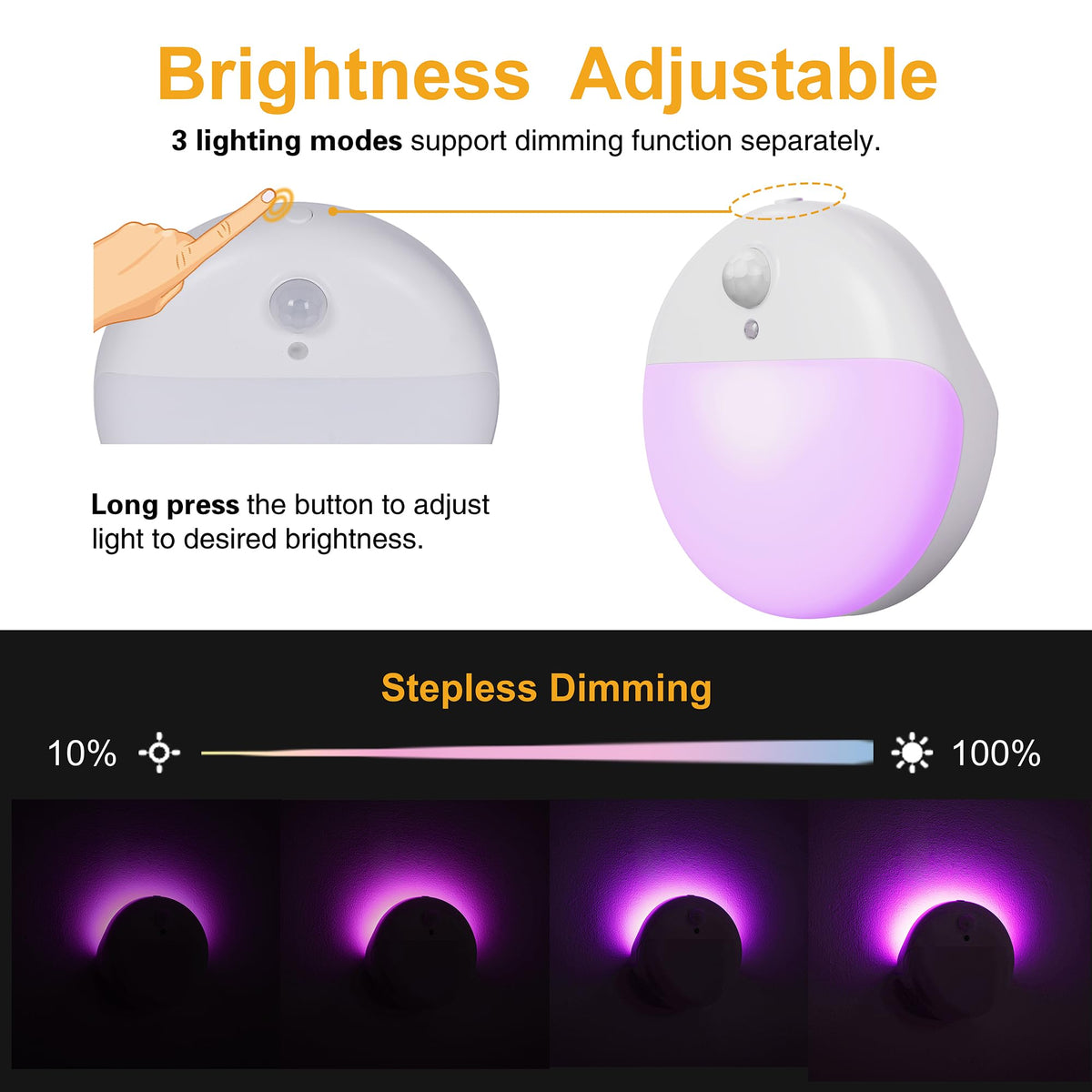 Q: Can I adjust the brightness of the night light, and if so, how?A: Yes, the brightness of the YUNLEX night light is adjustable. You can steplessly dim the light by long-pressing the button at the top, allowing you to customize the brightness from a very dim glow to bright light.