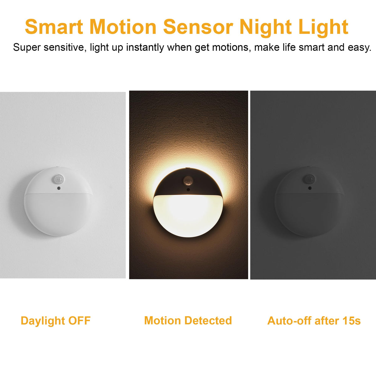 Q: How does the motion sensor feature work on this night light?A: The smart motion sensor in the YUNLEX night light is highly sensitive and activates the light when it detects movement within a maximum range of 12 feet at a 120° angle. After 15 seconds of inactivity, the light will automatically turn off, helping to conserve battery life.