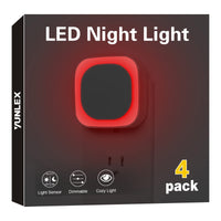 Yunlex 4 Pack Plug In Dimmable Red Night Light, Auto Dusk To Dawn Sensor,Soft Glow, Diffused Light, Led Night Light For Kids, Ad