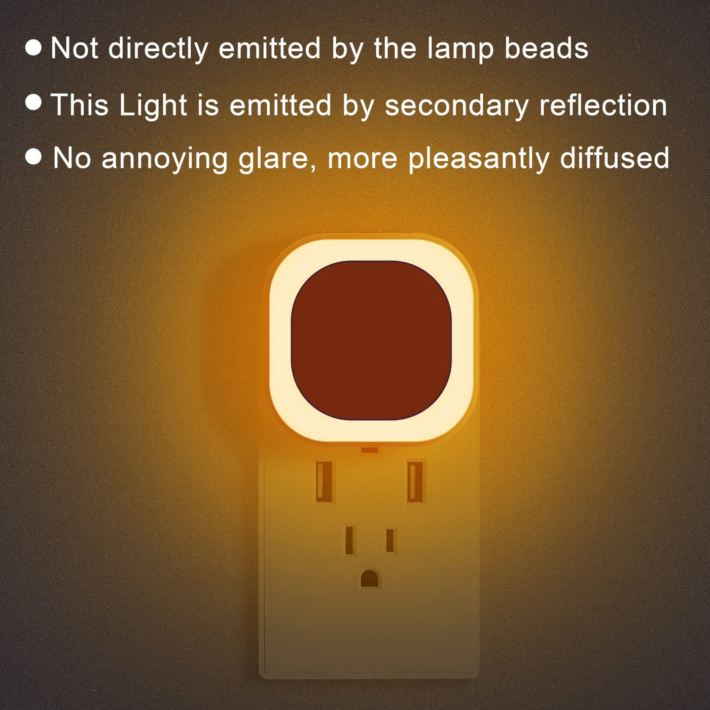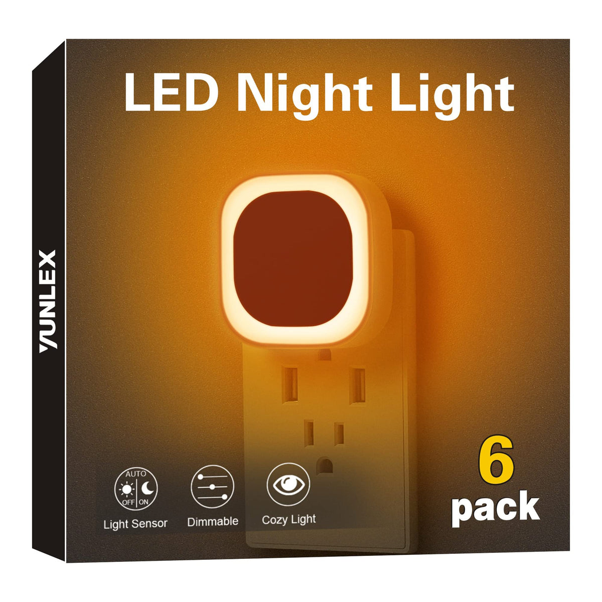 Yunlex 6 Pack Plug In Dimmable Night Lights, Auto Dusk To Dawn Sensor, Soft Glow Amber Night Lights For Bathroom, Hallway, Stair
