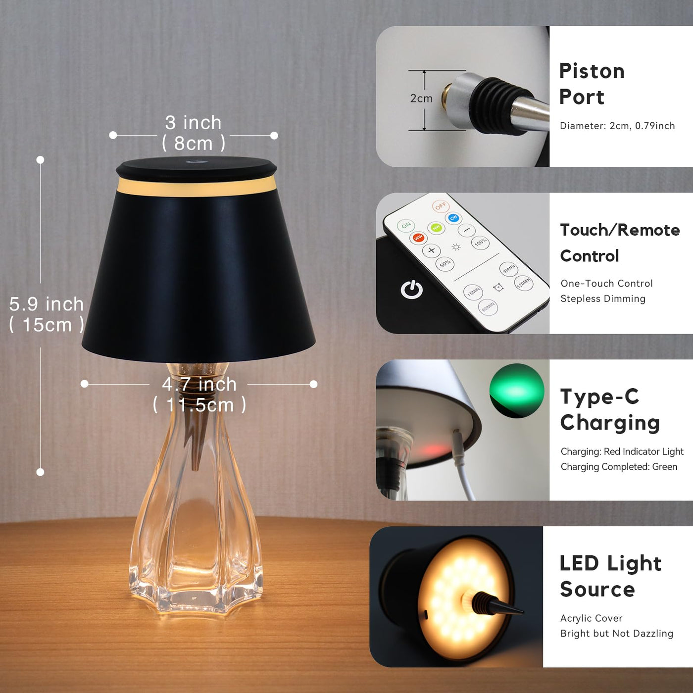 Yupola Wireless Bottle Lamp With Remote,Cordless Lamp Shade Dimmable For Wine Bottles,Rechargeable Battery Operated Touch Contro