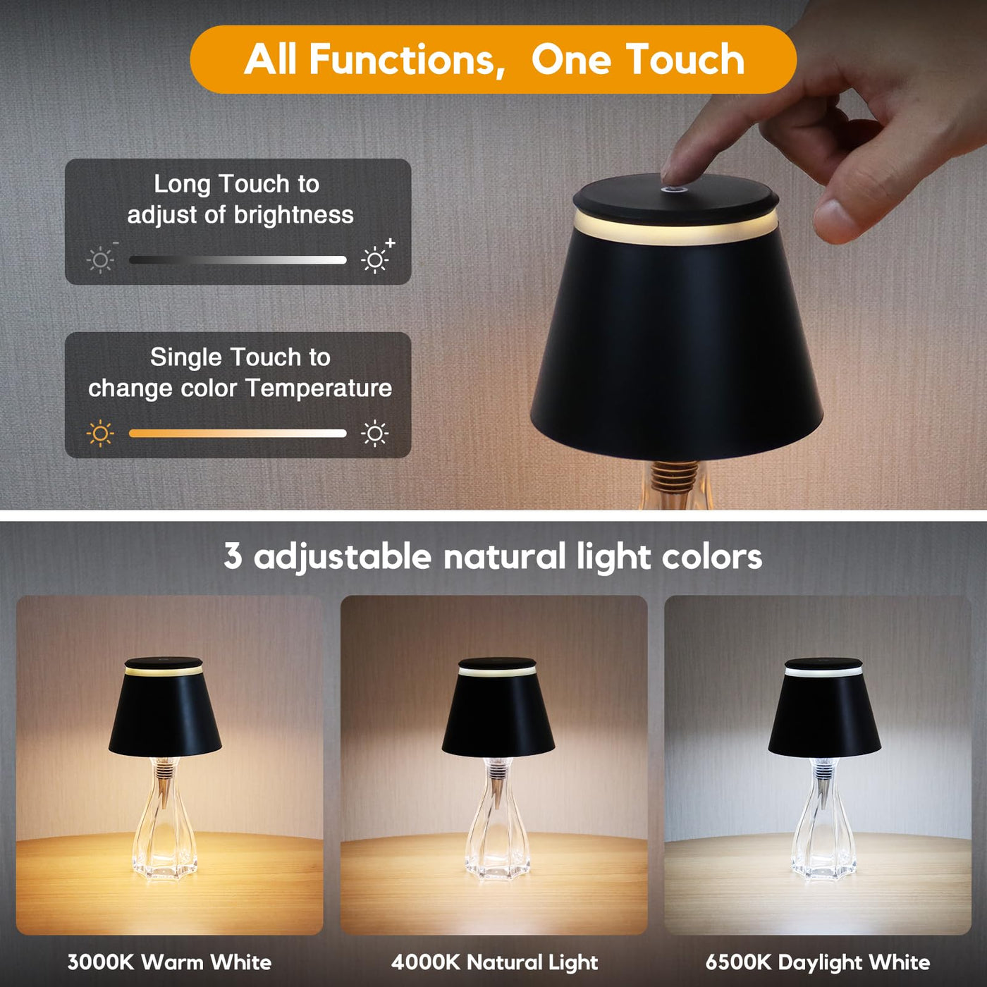 Q: What lighting modes does the lamp offer?A: The Yupola Wireless Bottle Lamp offers multiple lighting modes with a color temperature range of 3000K to 6000K, including white, warm white, and warm light. You can easily switch between modes using the touch control or the included remote for added convenience.
