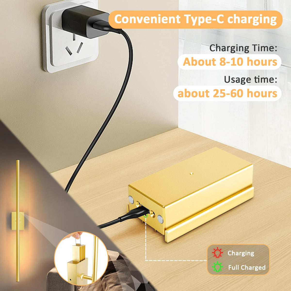 Yurnero Gold Battery Operated Wall Sconce, Set of 2