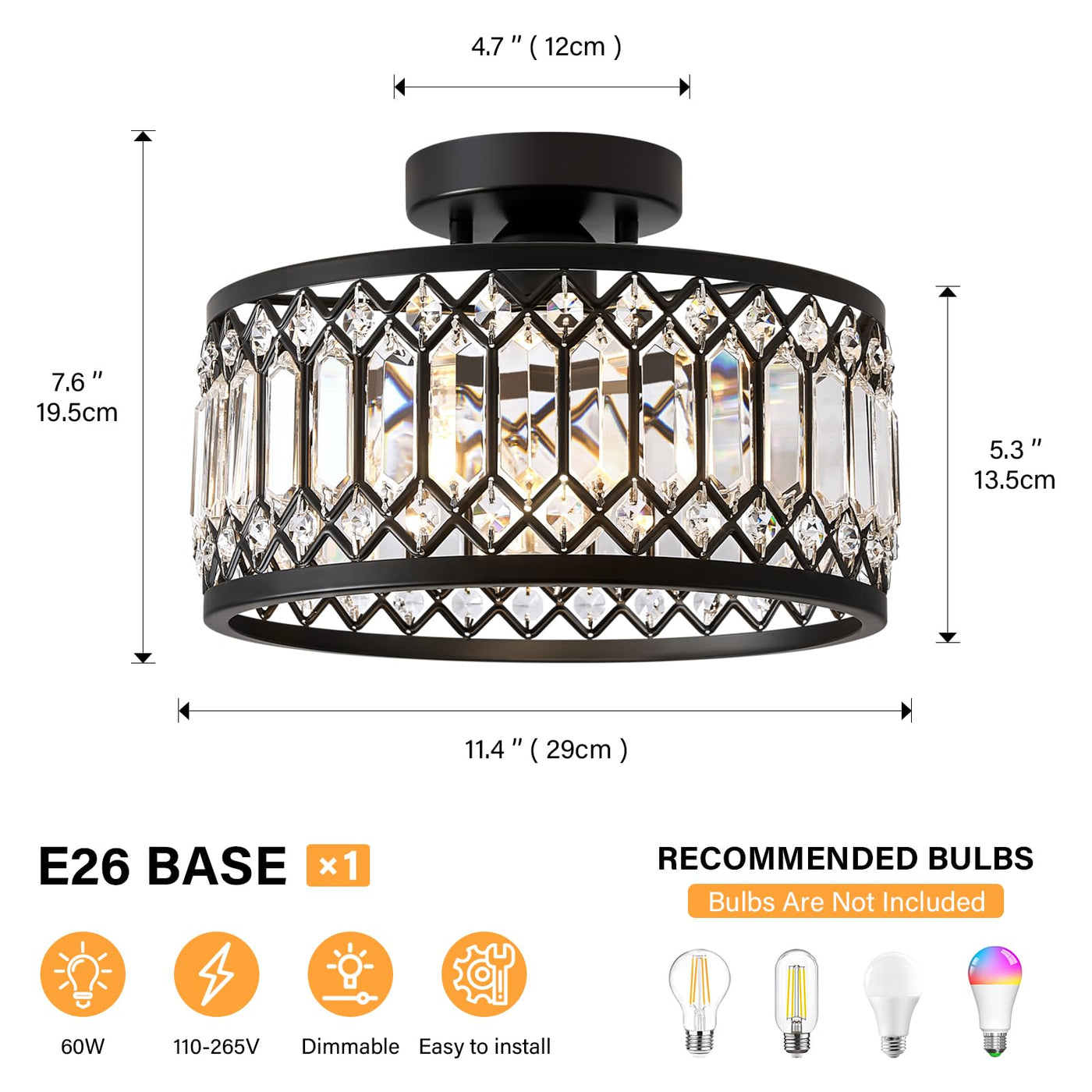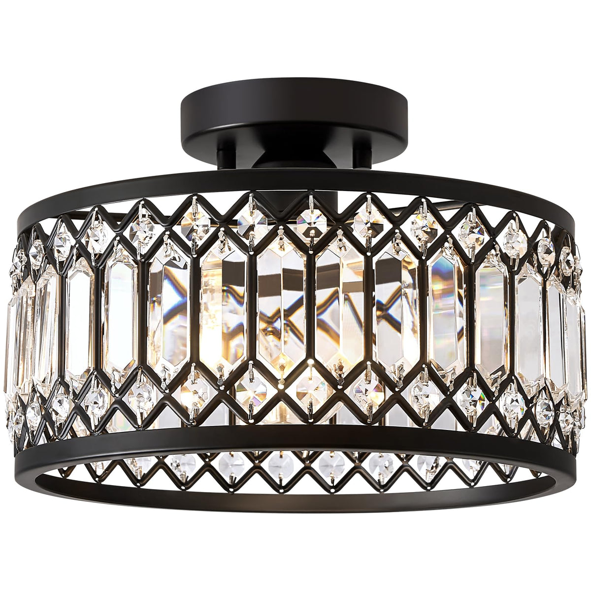 Yurnyq Crystal Ceiling Light Fixture, Modern Semi Flush Mount Ceiling Light, Black Lighting Fixtures Lamp For Hallway, Kitchen,