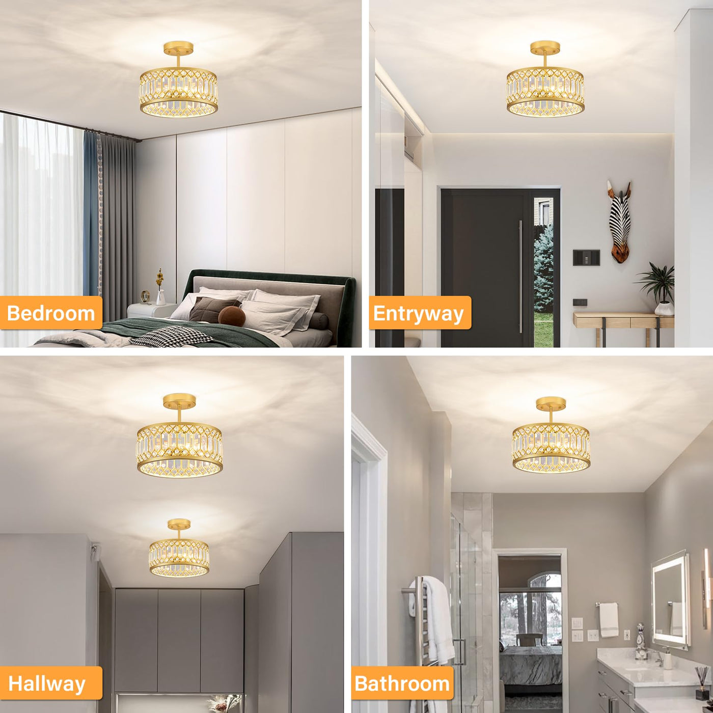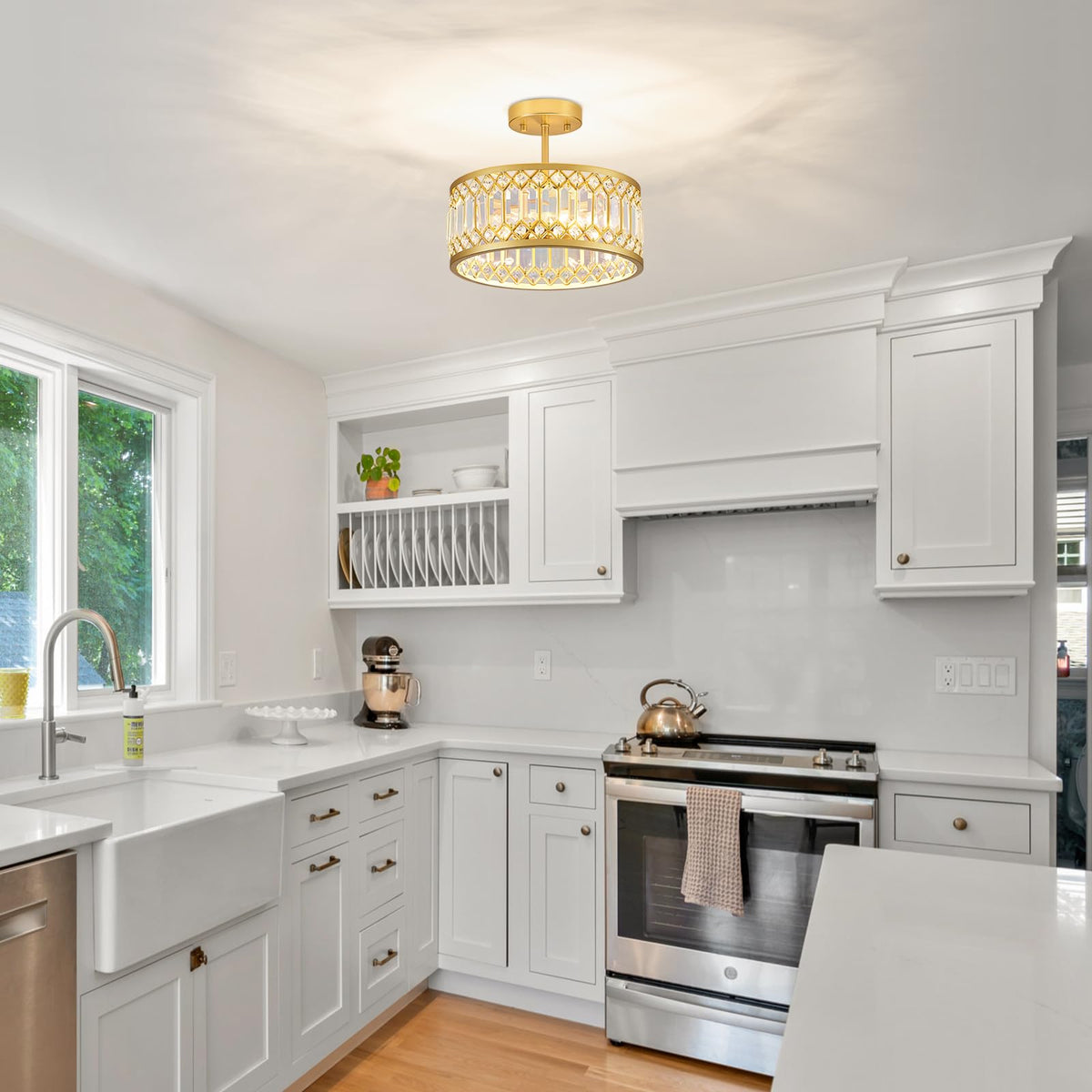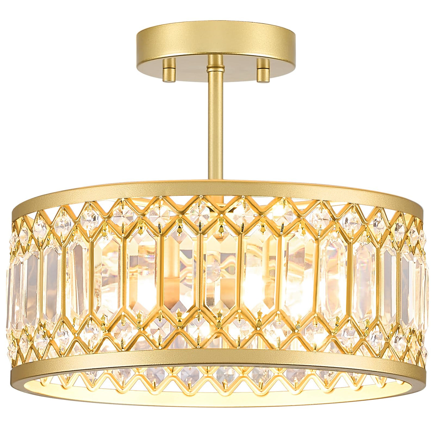 Yurnyq Crystal Ceiling Light Fixture, Modern Semi Flush Mount Ceiling Light, Gold Lighting Fixtures Ceiling Chandelier For Kitch