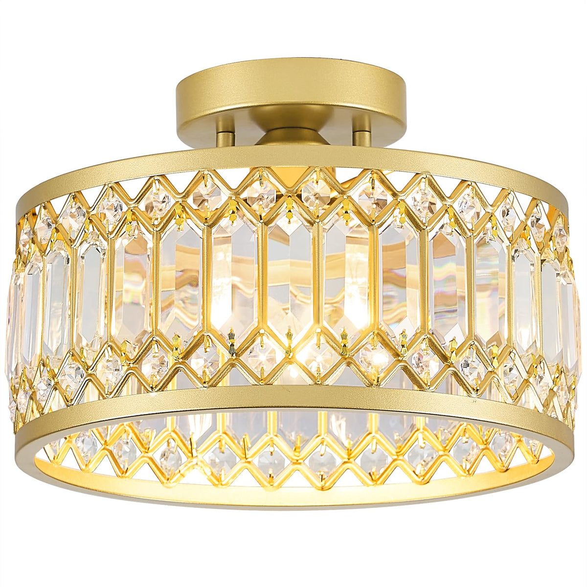 Yurnyq Crystal Ceiling Light Fixture, Modern Semi Flush Mount Ceiling Light, Gold Lighting Fixtures Ceiling Lamp For Hallway, Ki