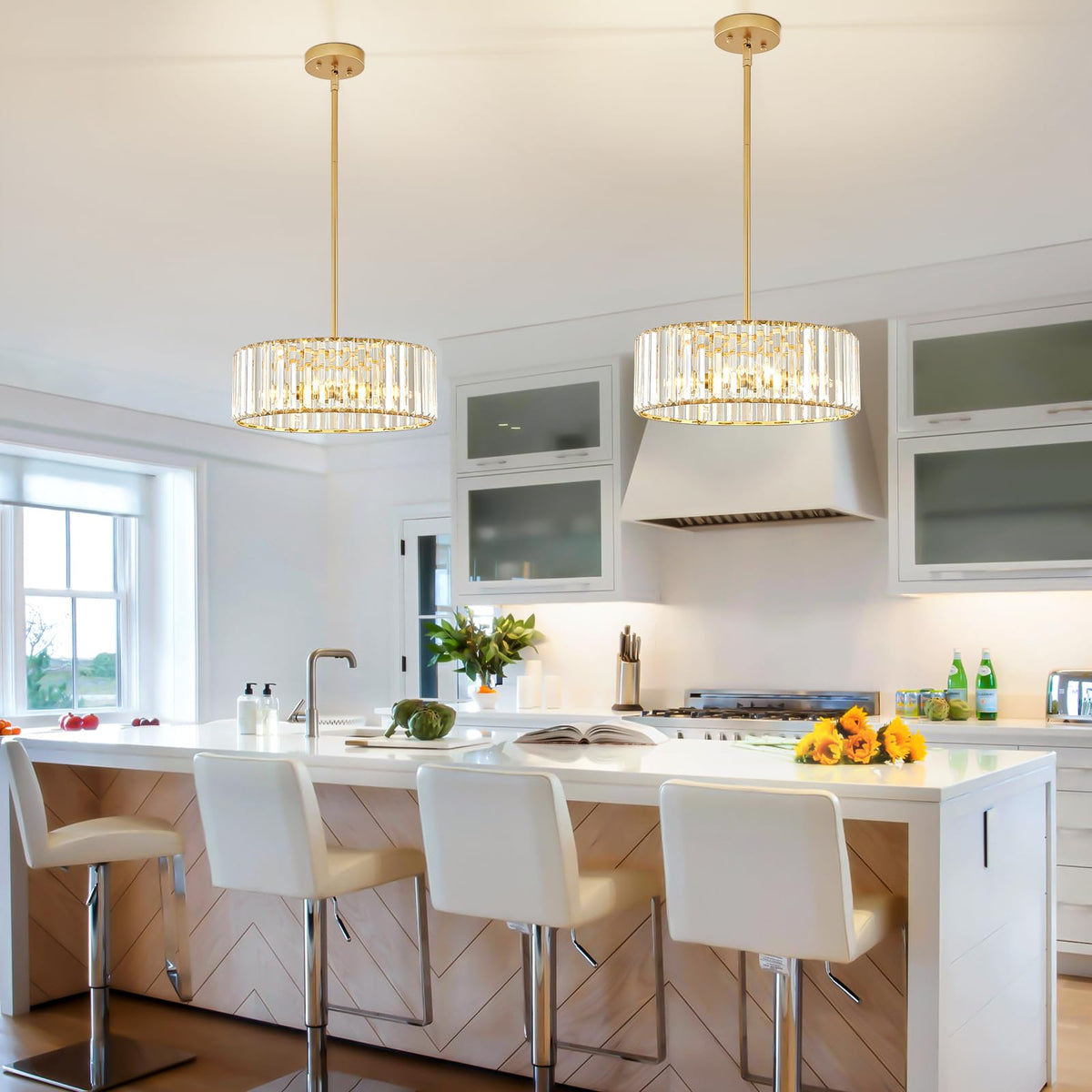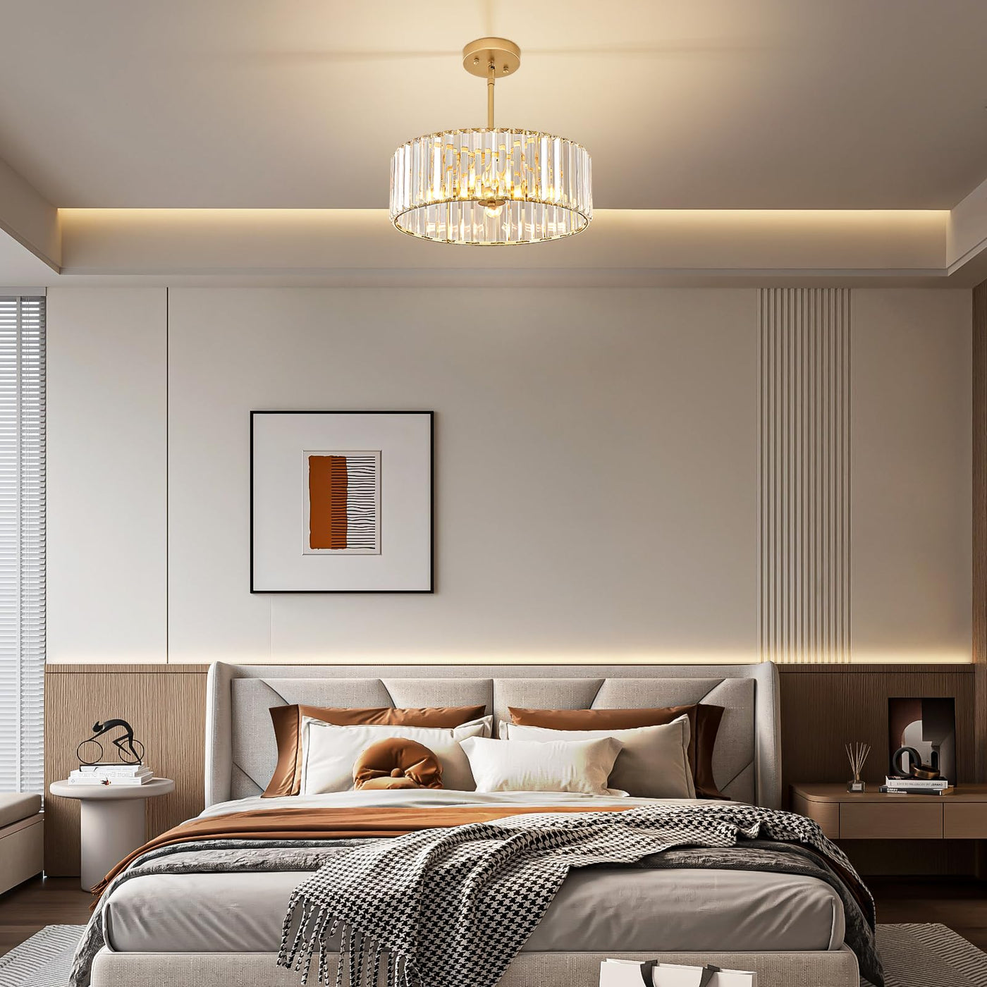 Yurnyq Gold Crystal Chandelier For Dining Room, 4-Light Modern Semi Flush Mount Chandelier Lighting Fixtures, Round Kitchen Hang