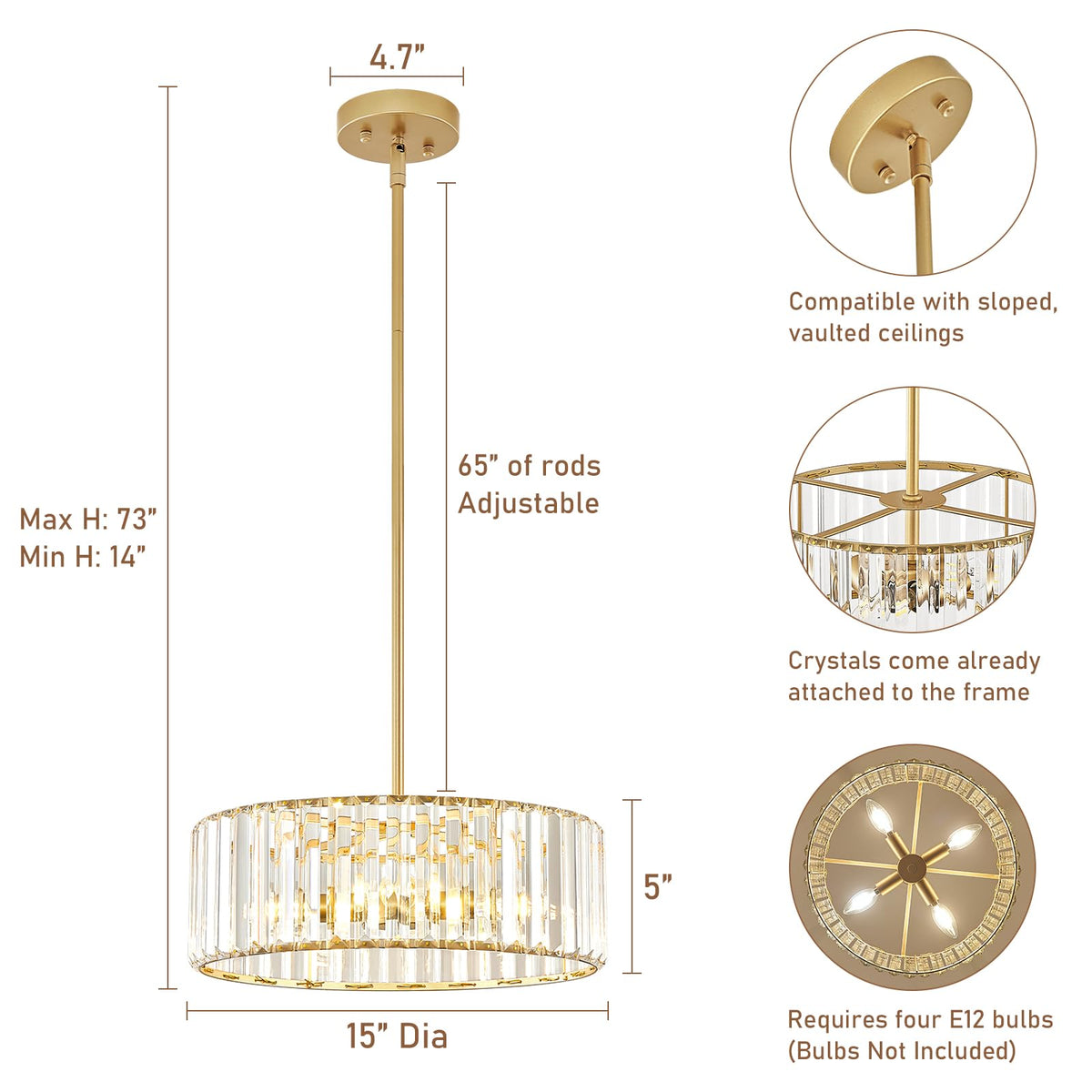 Gold Crystal Chandelier: Semi Flush Mount Light Fixture Input Voltage: 120V Ac A Glamorous Crystal Pendant Light That Add Substance And Dimension To Any Setting. It Features A Drum Profile Layered In Shining Crystals And A Soft Gold Finish That Adds A Warm Touch. Provides A Warm And Welcoming Aura For An Entryway Or Dining Area.