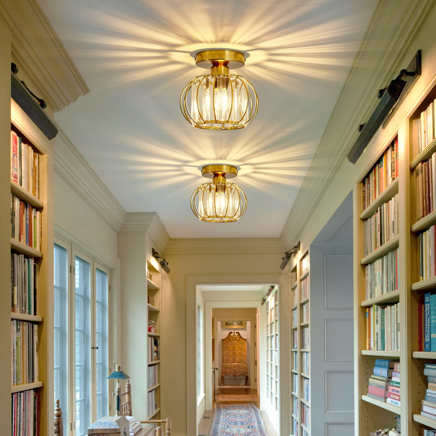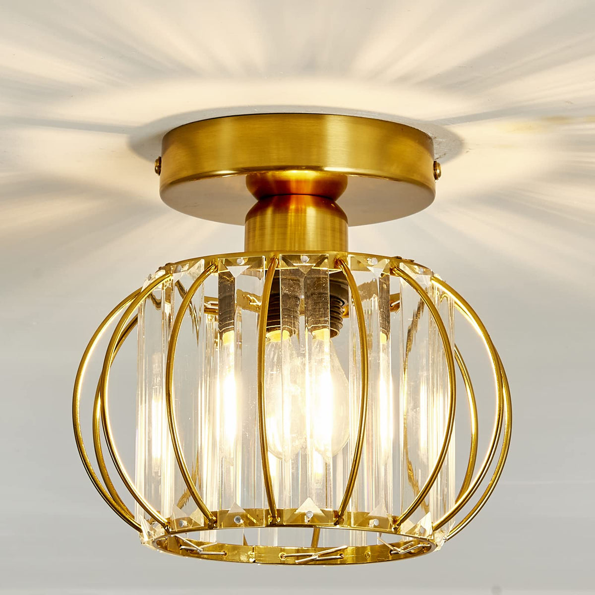 Yyjlx Crystal Semi Flush Mount Ceiling Light Fixture E26 Mini Antique Gold Chandelier Small Ceiling Lamp For Entryway Bedroom Ba