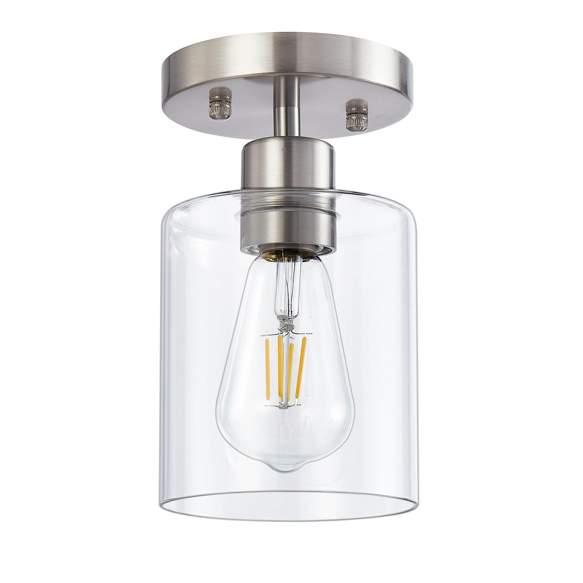 YYT Brushed Nickel Semi Flush Mount Ceiling Light, 1-Light Fixture, Clear Glass Shade, Model C1812001SB