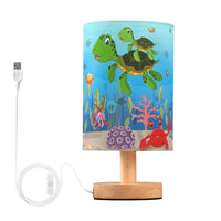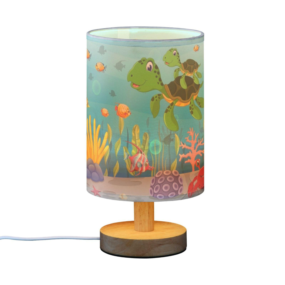 Yyzzh Table Lamp Colorful Underwater Sea Turtle Octopus Crab Fish Coral Aquatic Nightstand Lamp With Wood Base Fabric Lamp Shade