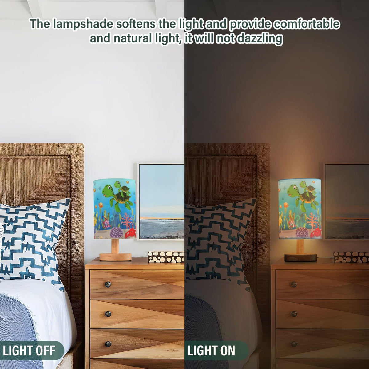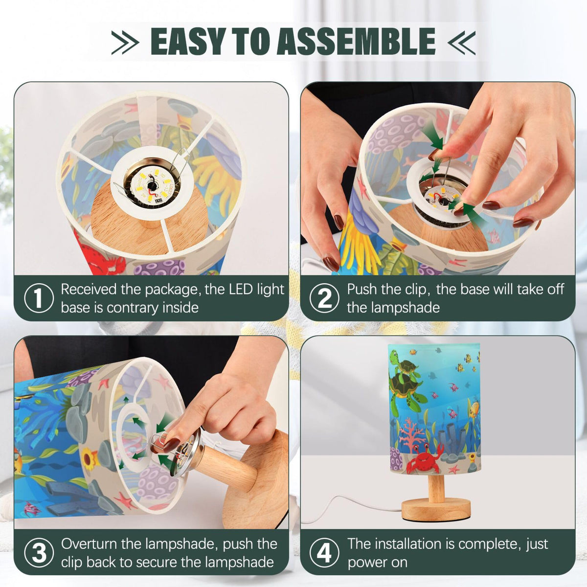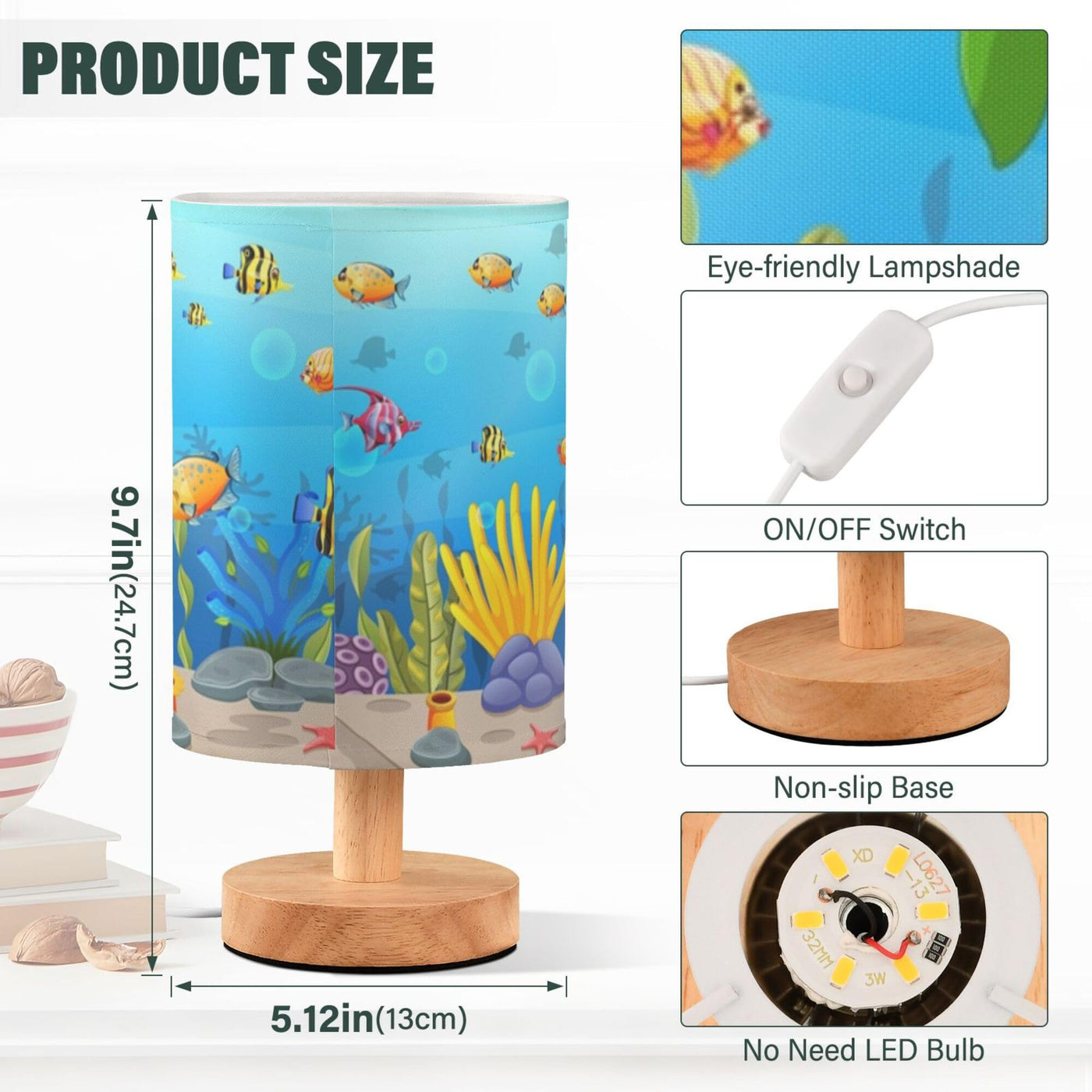 Yyzzh Colorful Marine Animal Underwater Sea Turtle Octopus Crab Fish Coral Aquatic Bubble Table Lamps Night Light Nightstand Lamp With Wood Base Fabric Lamp Shade Bedside Desk Lamp For Nursery Bedroom Living Room Kids Room Officesize: 13 Cm (Diameter Of The Lampshade) X 24.7 Cm / 5.12 Inches (Diameter Of The Lampshade) X 9.7 Inches; Printing Instructions: Lampshade Printing;Material: Linen Fabric (Lampshade) + Led Light (No Light Bulb) With Wooden Base + Usb Button Line (Non-Demolition);Feature: The Table Lamp Includes A Lampshade, No Need To Install A Light Bulb, The Led Light Is Integrated With The Stable Wooden Base, A Short-End Button Switch, Which Is Convenient For You To Turn On Or Turn Off The Lights, Usb Interface, Plug And Use The Desk Lamp; Non-Flashing Warm Lights Protect Your Children And Family'S Eyes;Applicable Scene: Suitable For Bedrooms, Guest Rooms, Living Rooms, Study, Boy'S And Girls' Rooms, Offices, Desks, Etc;Instructions For Usage: ?The Lamp Holder And The Lampshade For Reverse Packaging, You Need To Separate Them First; ?Press Down The Center Buckle To Separate The Lamp Seat And The Lampshade; ?Press The Lampshade Center Buckle Into The Ring, Then The Install Is Complete; ?Control Usb To The Power Supply And Control The Button Switch.