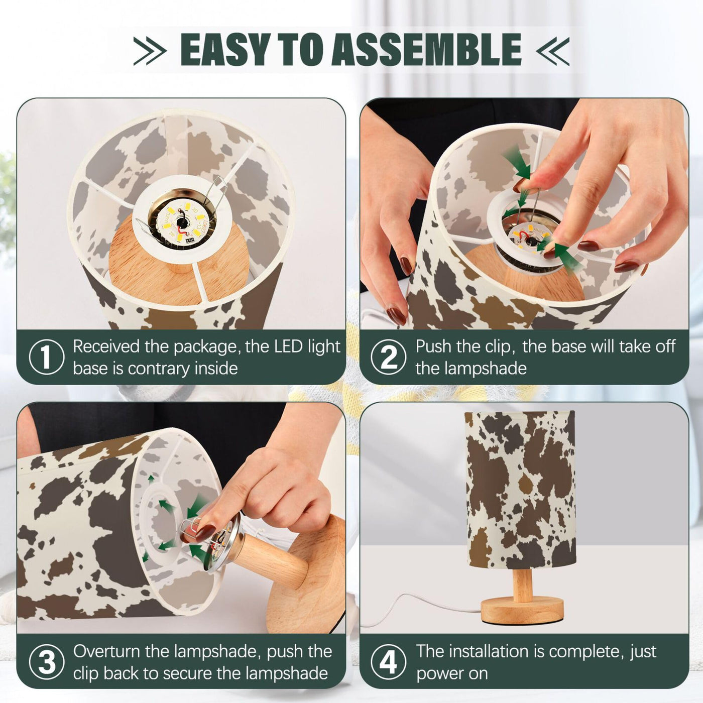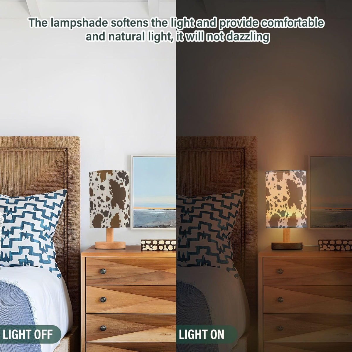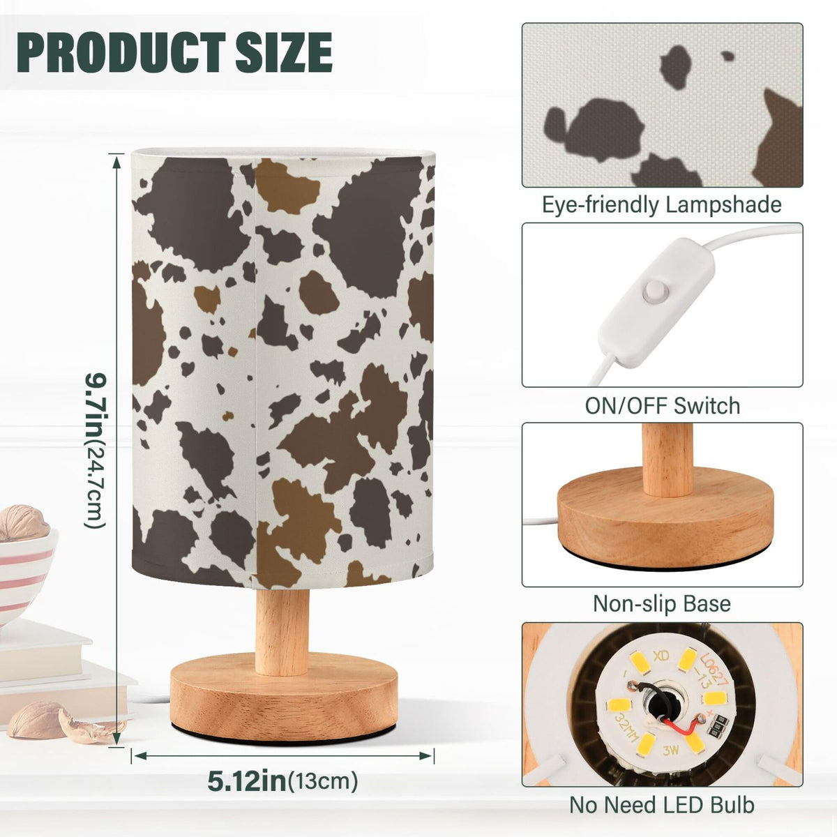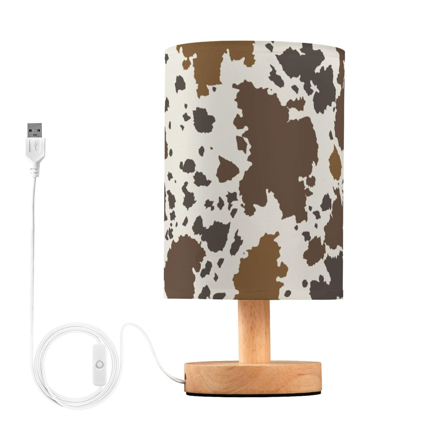 Yyzzh Cow Skin Brown Cowhide Pattern Table Lamps Night Light Nightstand Lamp With Wood Base Fabric Lamp Shade Bedside Desk Lamp For Nursery Bedroom Living Room Kids Room Officesize: 13 Cm (Diameter Of The Lampshade) X 24.7 Cm / 5.12 Inches (Diameter Of The Lampshade) X 9.7 Inches; Printing Instructions: Lampshade Printing;Material: Linen Fabric (Lampshade) + Led Light (No Light Bulb) With Wooden Base + Usb Button Line (Non-Demolition);Feature: The Table Lamp Includes A Lampshade, No Need To Install A Light Bulb, The Led Light Is Integrated With The Stable Wooden Base, A Short-End Button Switch, Which Is Convenient For You To Turn On Or Turn Off The Lights, Usb Interface, Plug And Use The Desk Lamp; Non-Flashing Warm Lights Protect Your Children And Family'S Eyes;Applicable Scene: Suitable For Bedrooms, Guest Rooms, Living Rooms, Study, Boy'S And Girls' Rooms, Offices, Desks, Etc;Instructions For Usage: ?The Lamp Holder And The Lampshade For Reverse Packaging, You Need To Separate Them First; ?Press Down The Center Buckle To Separate The Lamp Seat And The Lampshade; ?Press The Lampshade Center Buckle Into The Ring, Then The Install Is Complete; ?Control Usb To The Power Supply And Control The Button Switch.