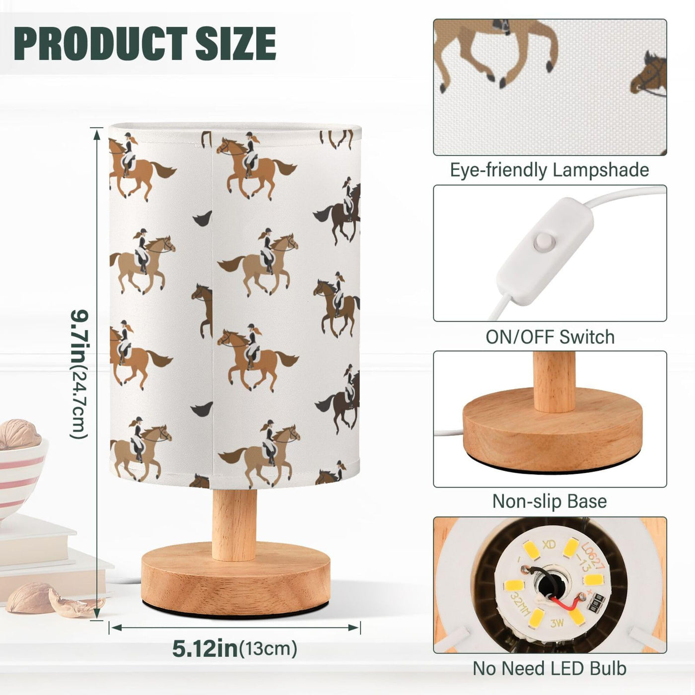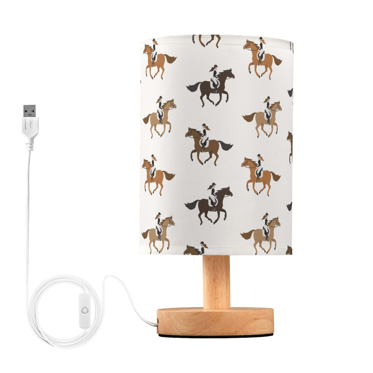 Yyzzh Cowgirl On Horse Pattern Table Lamps Night Light Nightstand Lamp With Wood Base Fabric Lamp Shade Bedside Desk Lamp For Nursery Bedroom Living Room Kids Room Officesize: 13 Cm (Diameter Of The Lampshade) X 24.7 Cm / 5.12 Inches (Diameter Of The Lampshade) X 9.7 Inches; Printing Instructions: Lampshade Printing;Material: Linen Fabric (Lampshade) + Led Light (No Light Bulb) With Wooden Base + Usb Button Line (Non-Demolition);Feature: The Table Lamp Includes A Lampshade, No Need To Install A Light Bulb, The Led Light Is Integrated With The Stable Wooden Base, A Short-End Button Switch, Which Is Convenient For You To Turn On Or Turn Off The Lights, Usb Interface, Plug And Use The Desk Lamp; Non-Flashing Warm Lights Protect Your Children And Family'S Eyes;Applicable Scene: Suitable For Bedrooms, Guest Rooms, Living Rooms, Study, Boy'S And Girls' Rooms, Offices, Desks, Etc;Instructions For Usage: ?The Lamp Holder And The Lampshade For Reverse Packaging, You Need To Separate Them First; ?Press Down The Center Buckle To Separate The Lamp Seat And The Lampshade; ?Press The Lampshade Center Buckle Into The Ring, Then The Install Is Complete; ?Control Usb To The Power Supply And Control The Button Switch.
