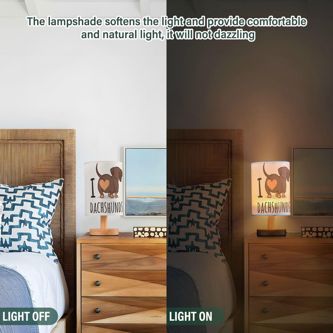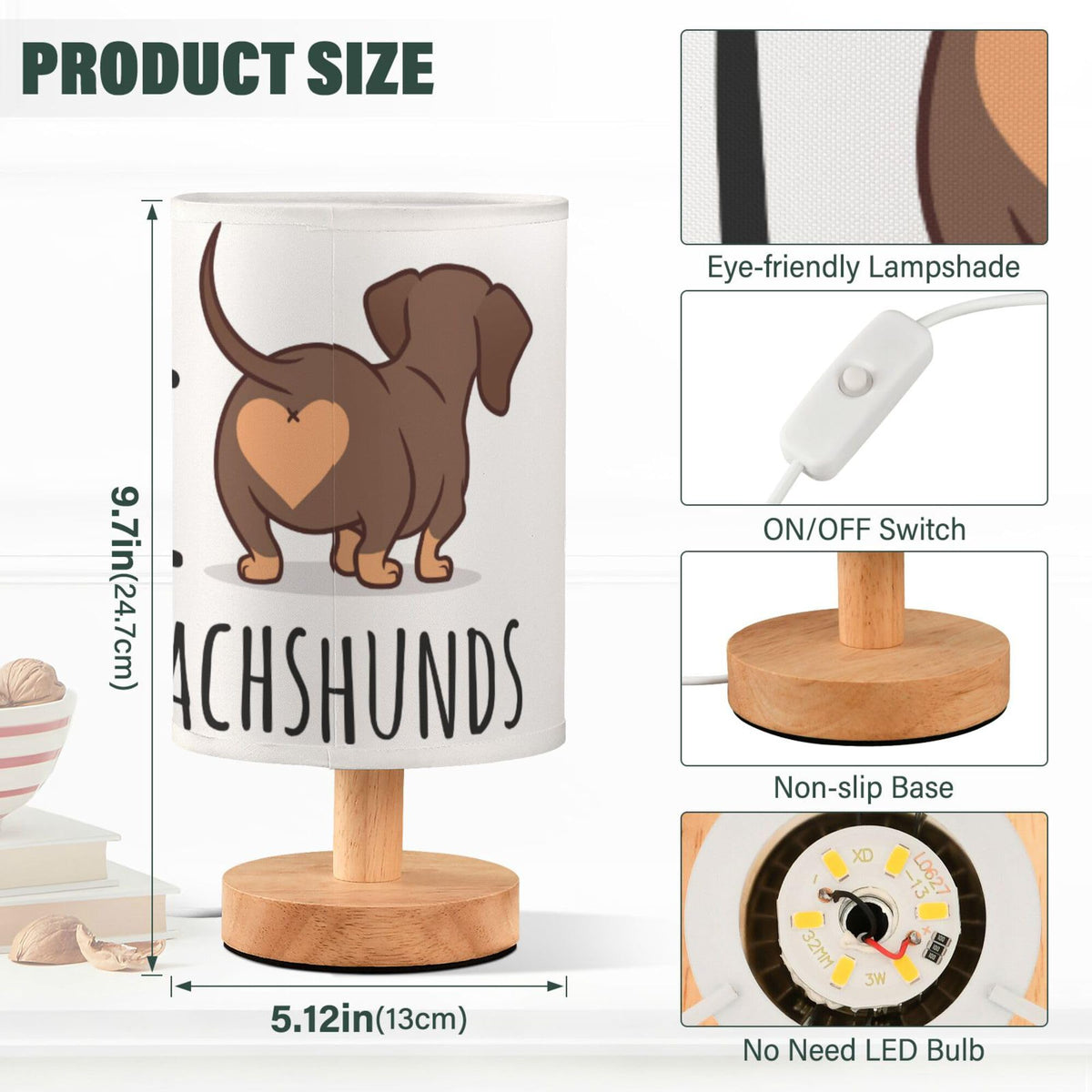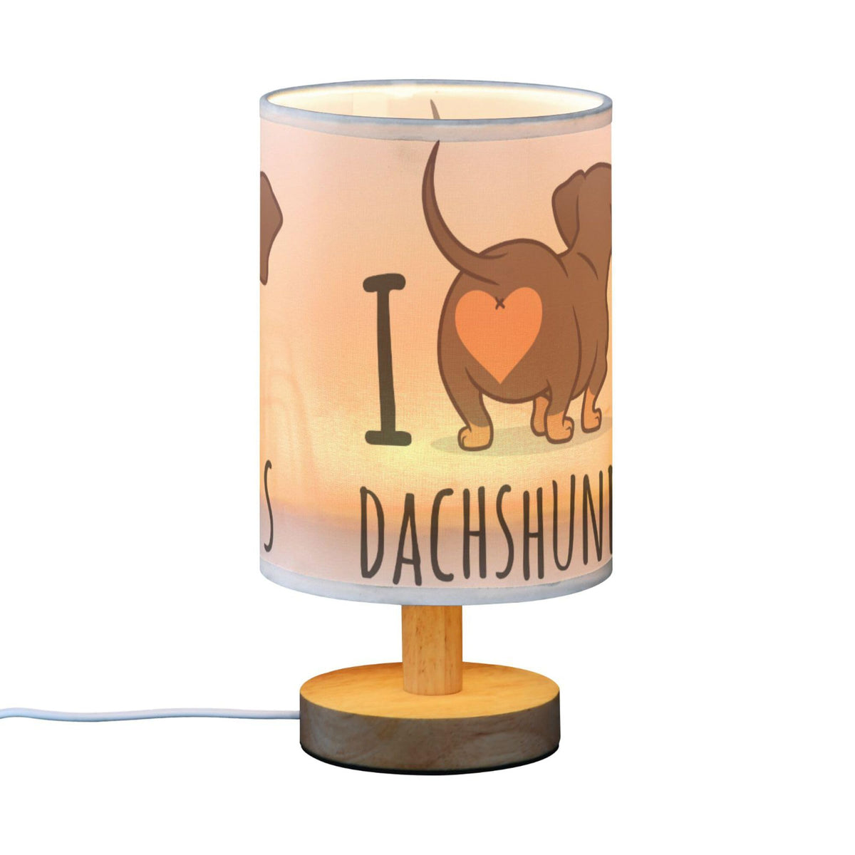 Yyzzh Table Lamp Cute Dachshund Dog I Love Dachshunds Heart Butt Nightstand Lamp With Wood Base Fabric Lamp Shade Bedside Desk L