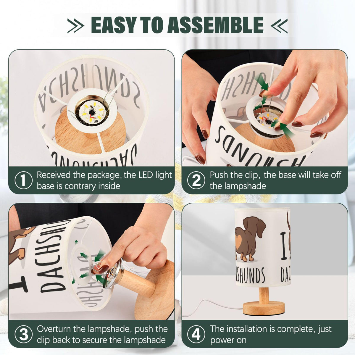 Yyzzh Cute Dachshund Dog I Love Dachshunds Heart Butt Table Lamps Night Light Nightstand Lamp With Wood Base Fabric Lamp Shade Bedside Desk Lamp For Nursery Bedroom Living Room Kids Room Officesize: 13 Cm (Diameter Of The Lampshade) X 24.7 Cm / 5.12 Inches (Diameter Of The Lampshade) X 9.7 Inches; Printing Instructions: Lampshade Printing;Material: Linen Fabric (Lampshade) + Led Light (No Light Bulb) With Wooden Base + Usb Button Line (Non-Demolition);Feature: The Table Lamp Includes A Lampshade, No Need To Install A Light Bulb, The Led Light Is Integrated With The Stable Wooden Base, A Short-End Button Switch, Which Is Convenient For You To Turn On Or Turn Off The Lights, Usb Interface, Plug And Use The Desk Lamp; Non-Flashing Warm Lights Protect Your Children And Family'S Eyes;Applicable Scene: Suitable For Bedrooms, Guest Rooms, Living Rooms, Study, Boy'S And Girls' Rooms, Offices, Desks, Etc;Instructions For Usage: ?The Lamp Holder And The Lampshade For Reverse Packaging, You Need To Separate Them First; ?Press Down The Center Buckle To Separate The Lamp Seat And The Lampshade; ?Press The Lampshade Center Buckle Into The Ring, Then The Install Is Complete; ?Control Usb To The Power Supply And Control The Button Switch.