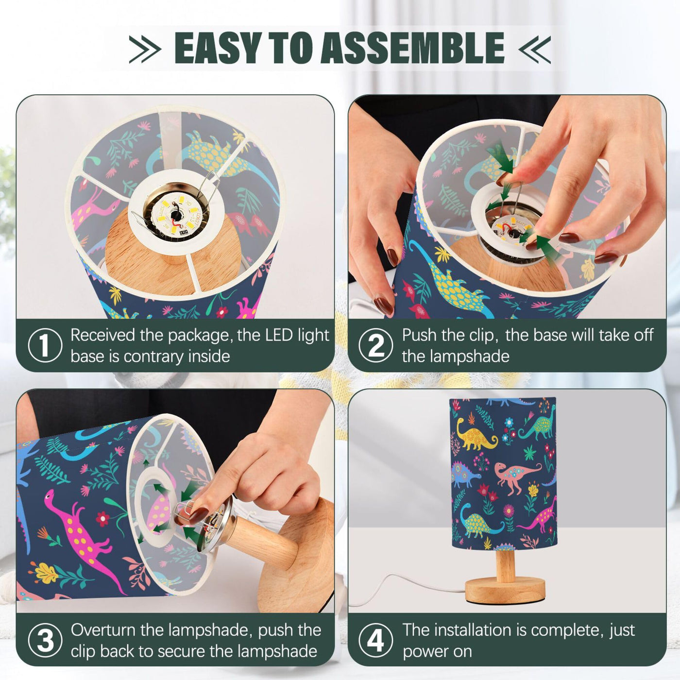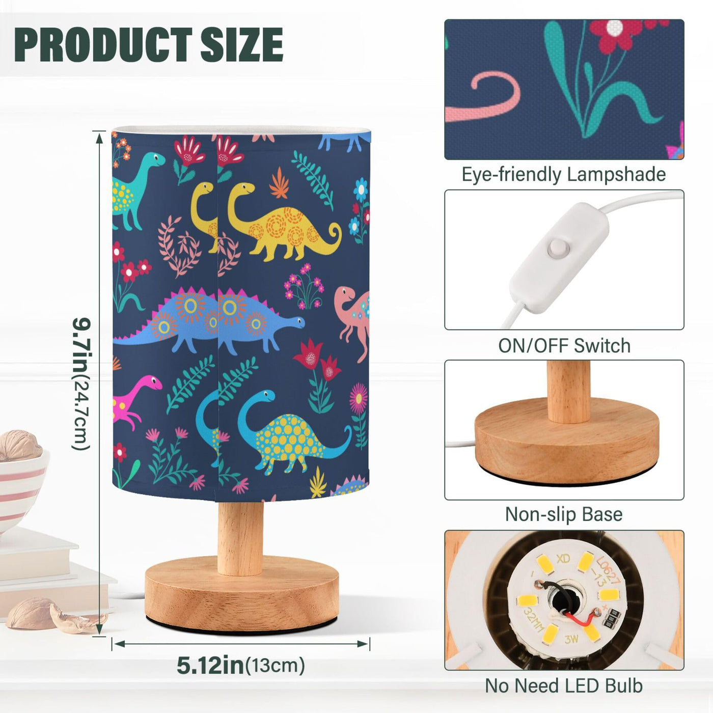 YYZZH Dinosaur Floral Pattern Table Lamps Night Light Nightstand Lamp With Wood Base Fabric Lamp Shade Bedside Desk Lamp For Nursery Bedroom Living Room Kids Room Office