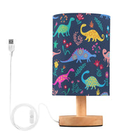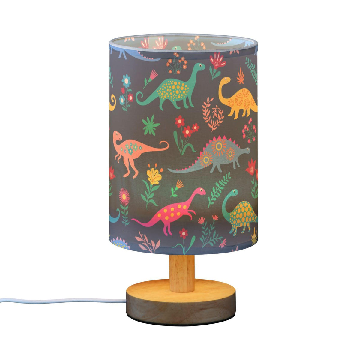 Yyzzh Table Lamp Dinosaur Floral Pattern Nightstand Lamp With Wood Base Fabric Lamp Shade Bedside Desk Lamp For Living Room Bedroom Kids Room Office