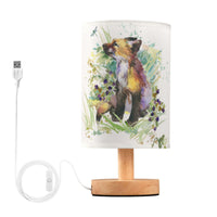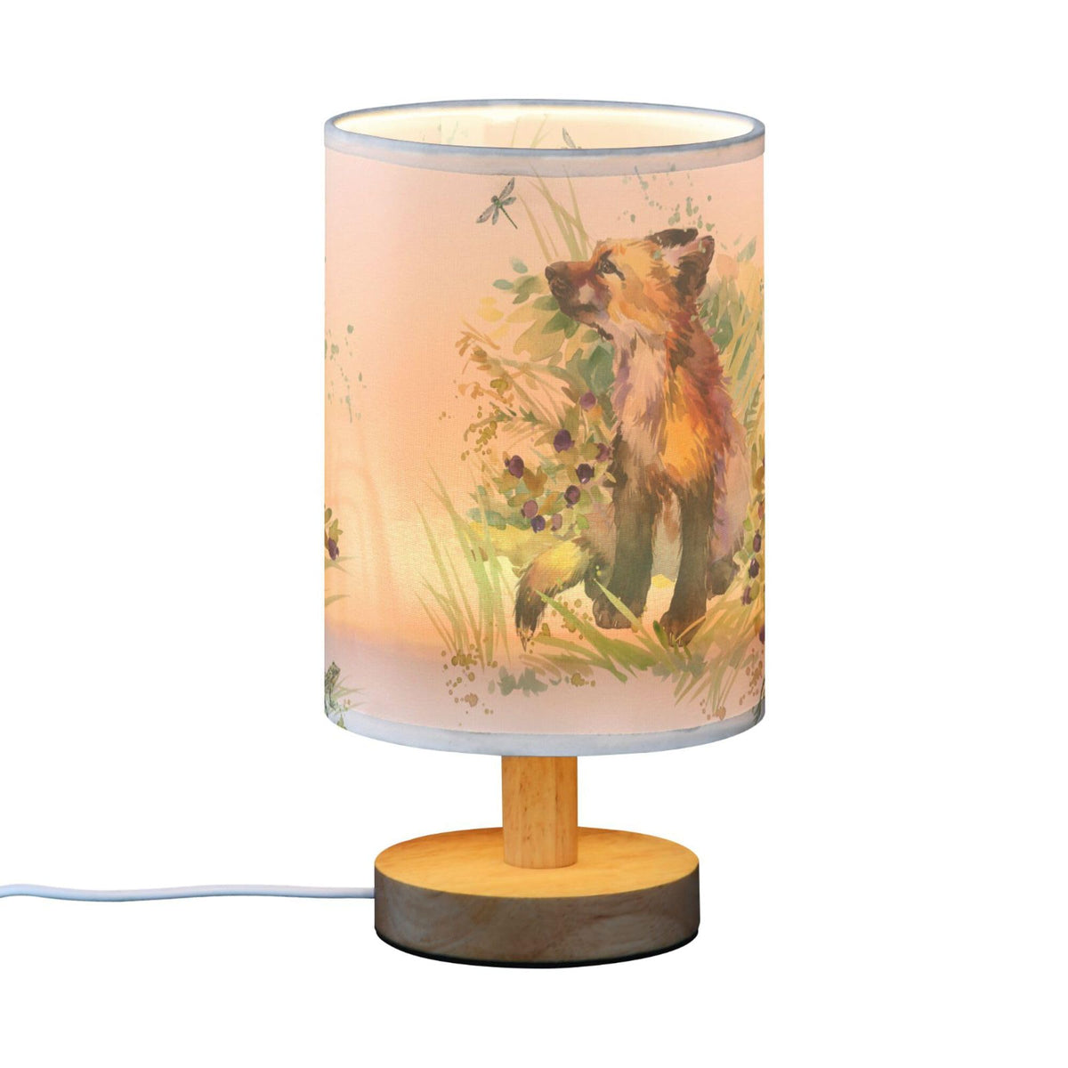 Yyzzh Table Lamp Fox Animal Dragonfly Frog In Floral Grass Woodland Nightstand Lamp With Wood Base Fabric Lamp Shade Bedside Des