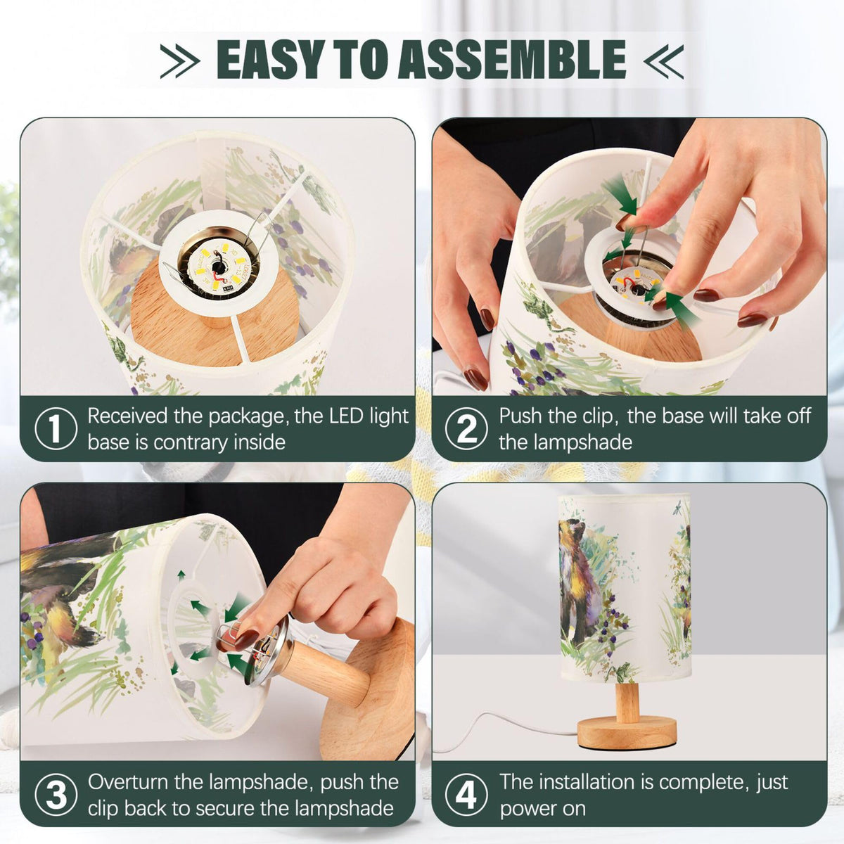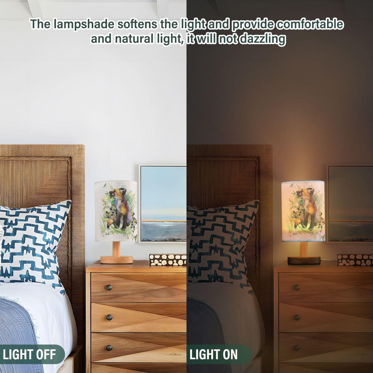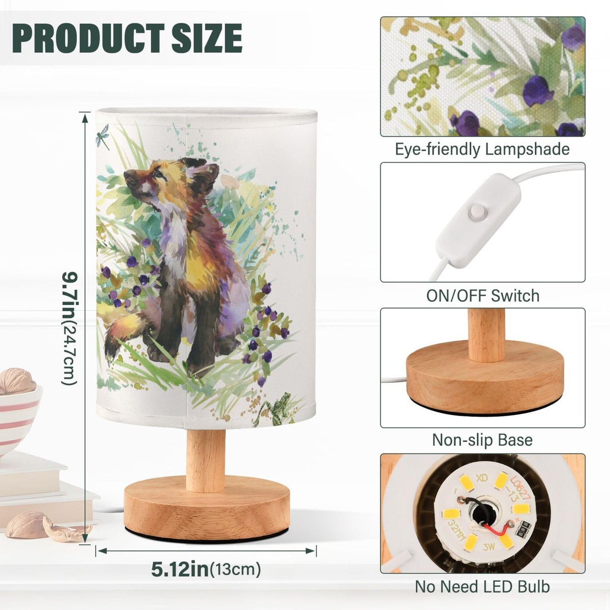 Yyzzh Fox Animal Dragonfly Frog In Floral Grass Woodland Table Lamps Night Light Nightstand Lamp With Wood Base Fabric Lamp Shade Bedside Desk Lamp For Nursery Bedroom Living Room Kids Room Officesize: 13 Cm (Diameter Of The Lampshade) X 24.7 Cm / 5.12 Inches (Diameter Of The Lampshade) X 9.7 Inches; Printing Instructions: Lampshade Printing;Material: Linen Fabric (Lampshade) + Led Light (No Light Bulb) With Wooden Base + Usb Button Line (Non-Demolition);Feature: The Table Lamp Includes A Lampshade, No Need To Install A Light Bulb, The Led Light Is Integrated With The Stable Wooden Base, A Short-End Button Switch, Which Is Convenient For You To Turn On Or Turn Off The Lights, Usb Interface, Plug And Use The Desk Lamp; Non-Flashing Warm Lights Protect Your Children And Family'S Eyes;Applicable Scene: Suitable For Bedrooms, Guest Rooms, Living Rooms, Study, Boy'S And Girls' Rooms, Offices, Desks, Etc;Instructions For Usage: ?The Lamp Holder And The Lampshade For Reverse Packaging, You Need To Separate Them First; ?Press Down The Center Buckle To Separate The Lamp Seat And The Lampshade; ?Press The Lampshade Center Buckle Into The Ring, Then The Install Is Complete; ?Control Usb To The Power Supply And Control The Button Switch.