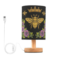 Yyzzh Table Lamp Honey Queen Bee Bumblebee Crown Flower Floral Wreath Nightstand Lamp With Wood Base Fabric Lamp Shade Bedside D