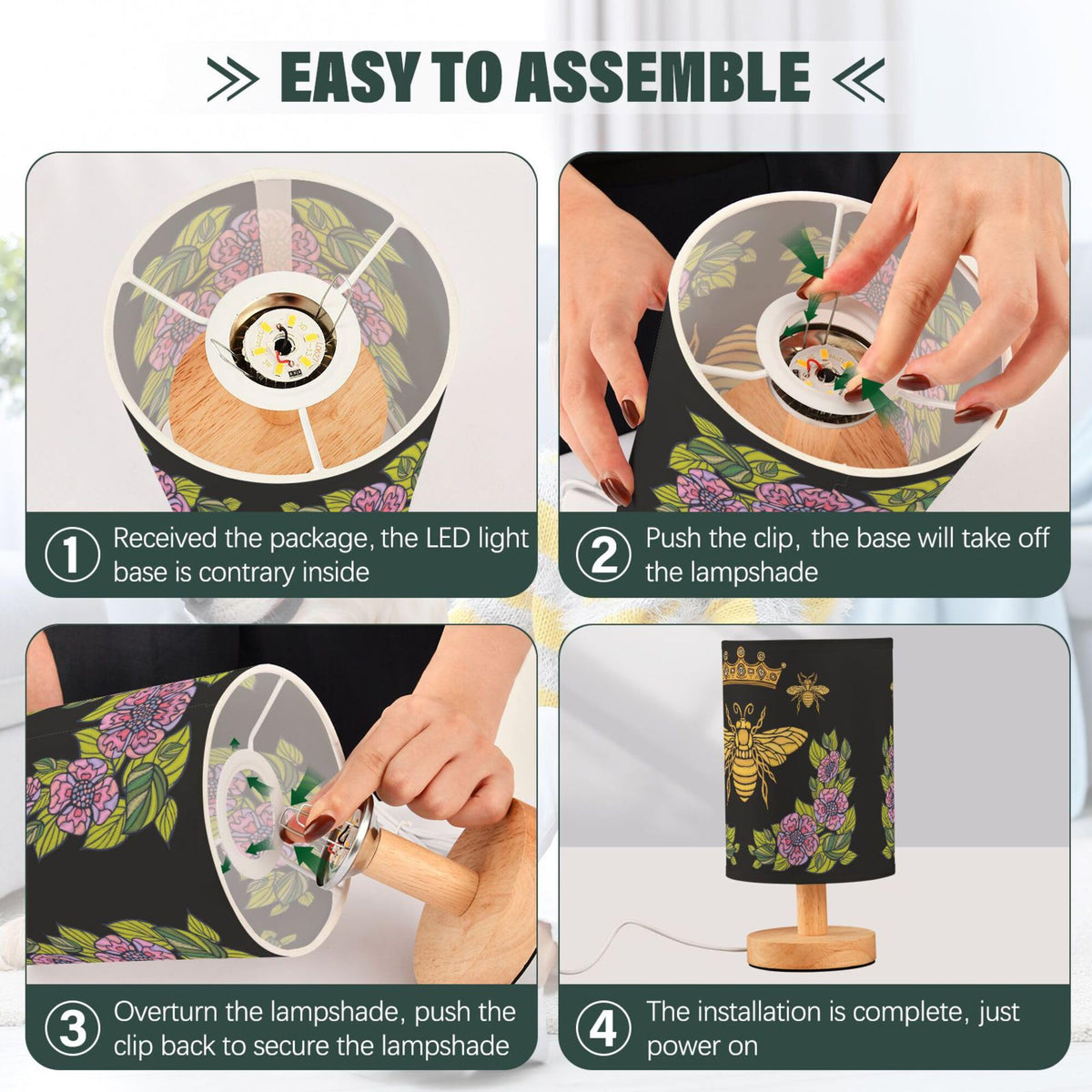 Yyzzh Honey Queen Bee Bumblebee Crown Flower Floral Wreath Embroidery Insect Print Table Lamps Night Light Nightstand Lamp With Wood Base Fabric Lamp Shade Bedside Desk Lamp For Nursery Bedroom Living Room Kids Room Officesize: 13 Cm (Diameter Of The Lampshade) X 24.7 Cm / 5.12 Inches (Diameter Of The Lampshade) X 9.7 Inches; Printing Instructions: Lampshade Printing;Material: Linen Fabric (Lampshade) + Led Light (No Light Bulb) With Wooden Base + Usb Button Line (Non-Demolition);Feature: The Table Lamp Includes A Lampshade, No Need To Install A Light Bulb, The Led Light Is Integrated With The Stable Wooden Base, A Short-End Button Switch, Which Is Convenient For You To Turn On Or Turn Off The Lights, Usb Interface, Plug And Use The Desk Lamp; Non-Flashing Warm Lights Protect Your Children And Family'S Eyes;Applicable Scene: Suitable For Bedrooms, Guest Rooms, Living Rooms, Study, Boy'S And Girls' Rooms, Offices, Desks, Etc;Instructions For Usage: ?The Lamp Holder And The Lampshade For Reverse Packaging, You Need To Separate Them First; ?Press Down The Center Buckle To Separate The Lamp Seat And The Lampshade; ?Press The Lampshade Center Buckle Into The Ring, Then The Install Is Complete; ?Control Usb To The Power Supply And Control The Button Switch.