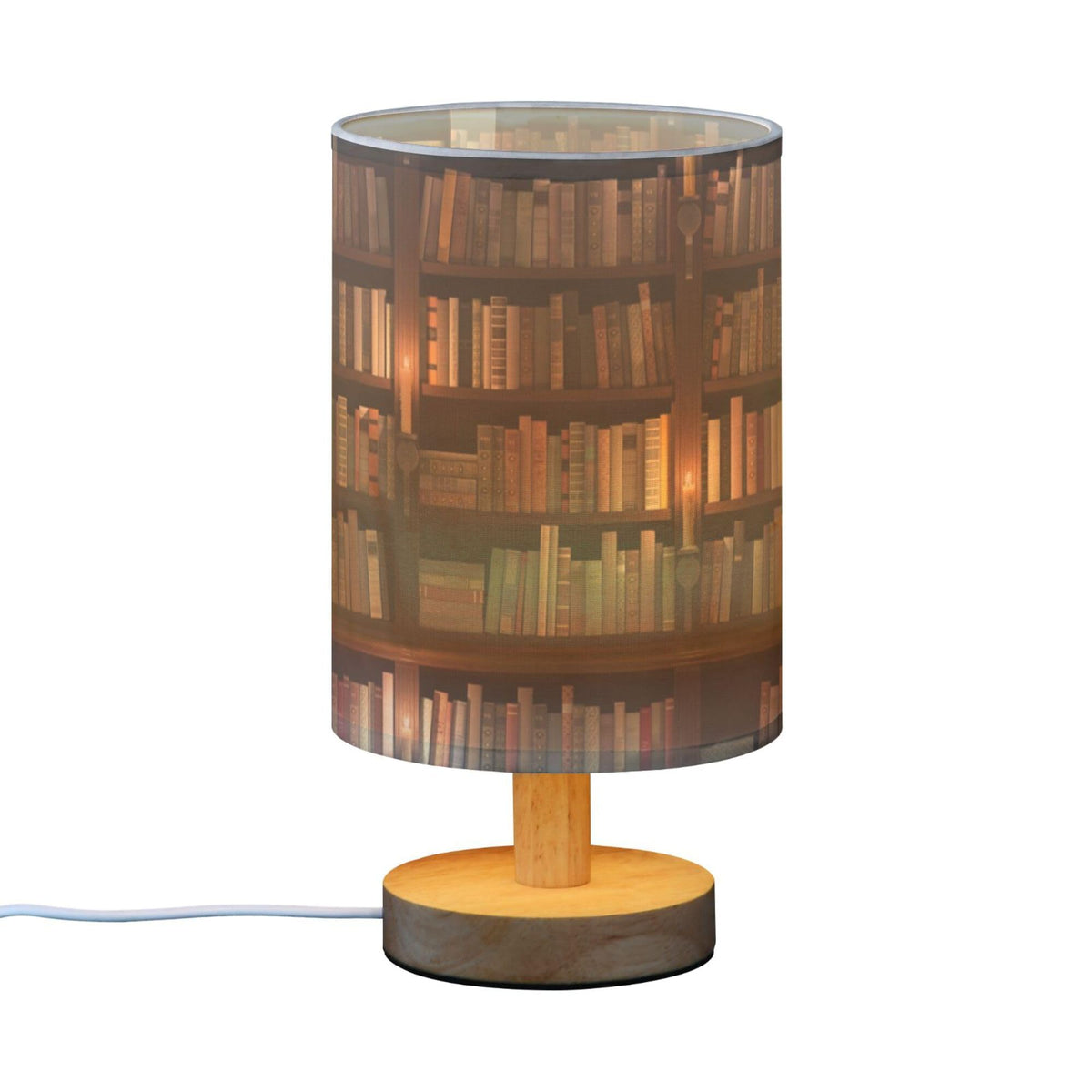 YYZZH Library Bookshelf Book Candle Table Lamps Night Light Nightstand Lamp With Wood Base Fabric Lamp Shade Bedside Desk Lamp For Nursery Bedroom Living Room Kids Room OfficeSize: 13 cm (diameter of the lampshade) x 24.7 cm / 5.12 inches (diameter of the lampshade) x 9.7 inches; Printing instructions: lampshade printing;Material: linen fabric (lampshade) + LED light (no light bulb) with wooden base + USB button line (non-demolition);Feature: the table lamp includes a lampshade, no need to install a light bulb, the LED light is integrated with the stable wooden base, a short-end button switch, which is convenient for you to turn on or turn off the lights, USB interface, plug and use the desk lamp; Non-flashing warm lights protect your children and family's eyes;Applicable scene: suitable for bedrooms, guest rooms, living rooms, study, boy's and girls' rooms, offices, desks, etc;Instructions for usage: ?The lamp holder and the lampshade for reverse packaging, you need to separate them first; ?Press down the center buckle to separate the lamp seat and the lampshade; ?Press the lampshade center buckle into the ring, then the install is complete; ?Control USB to the power supply and control the button switch.