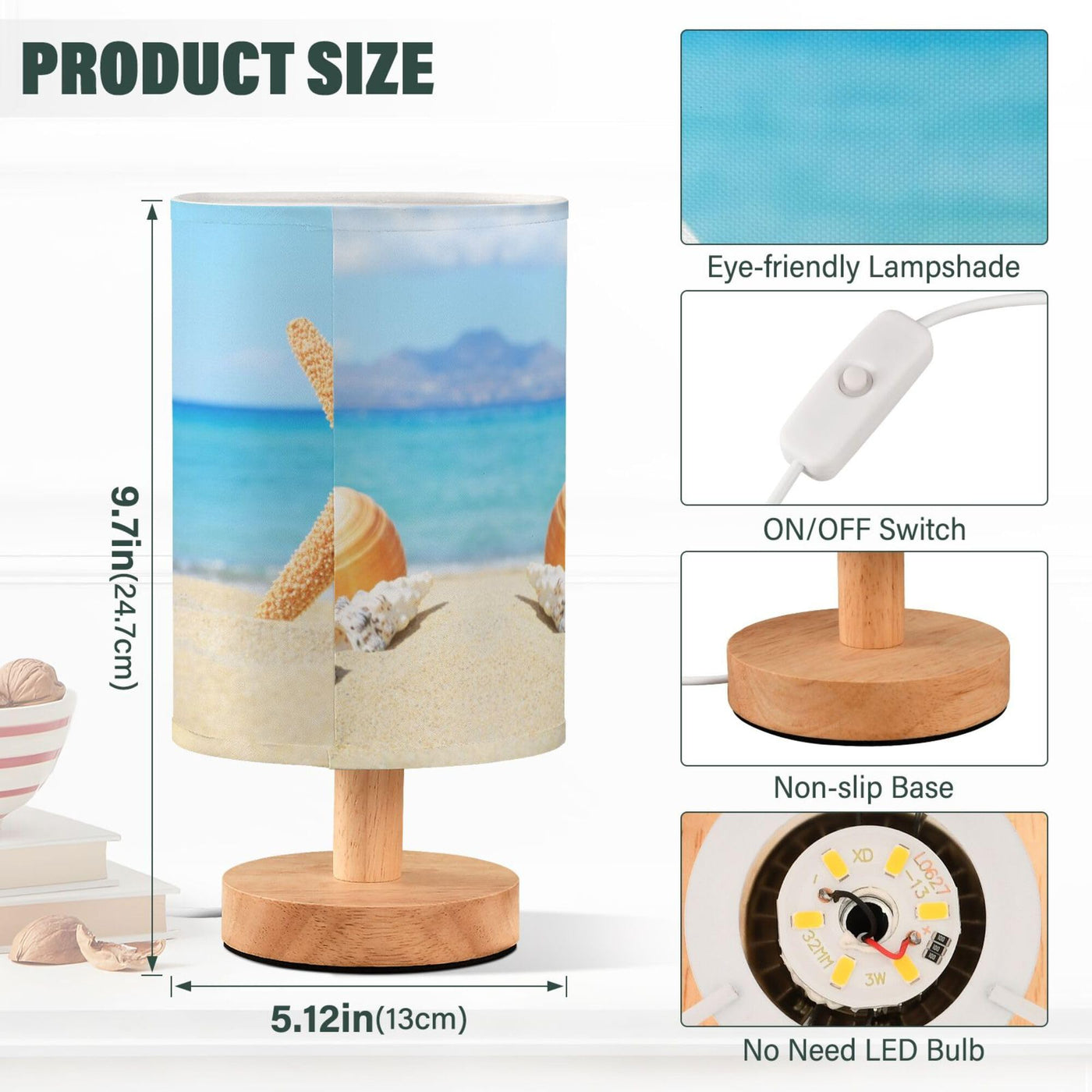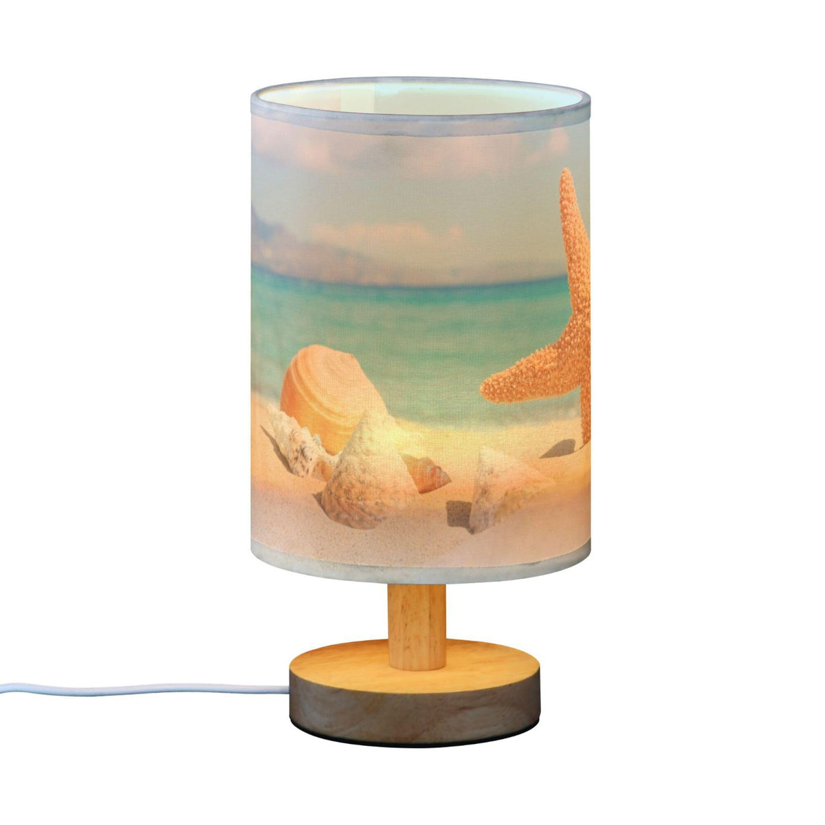 Yyzzh Table Lamp Ocean Beach Starfish Seashell Stone Blue Sky Nightstand Lamp With Wood Base Fabric Lamp Shade Bedside Desk Lamp