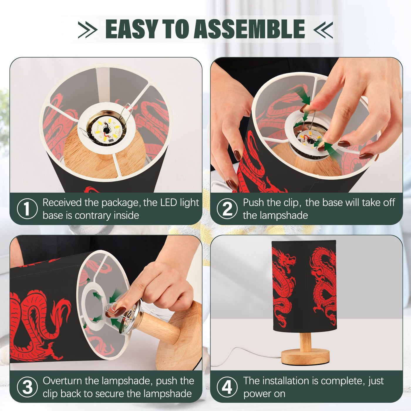 Yyzzh Red Chinese Dragon On Black Table Lamps Night Light Nightstand Lamp With Wood Base Fabric Lamp Shade Bedside Desk Lamp For Nursery Bedroom Living Room Kids Room Officesize: 13 Cm (Diameter Of The Lampshade) X 24.7 Cm / 5.12 Inches (Diameter Of The Lampshade) X 9.7 Inches; Printing Instructions: Lampshade Printing;Material: Linen Fabric (Lampshade) + Led Light (No Light Bulb) With Wooden Base + Usb Button Line (Non-Demolition);Feature: The Table Lamp Includes A Lampshade, No Need To Install A Light Bulb, The Led Light Is Integrated With The Stable Wooden Base, A Short-End Button Switch, Which Is Convenient For You To Turn On Or Turn Off The Lights, Usb Interface, Plug And Use The Desk Lamp; Non-Flashing Warm Lights Protect Your Children And Family'S Eyes;Applicable Scene: Suitable For Bedrooms, Guest Rooms, Living Rooms, Study, Boy'S And Girls' Rooms, Offices, Desks, Etc;Instructions For Usage: ?The Lamp Holder And The Lampshade For Reverse Packaging, You Need To Separate Them First; ?Press Down The Center Buckle To Separate The Lamp Seat And The Lampshade; ?Press The Lampshade Center Buckle Into The Ring, Then The Install Is Complete; ?Control Usb To The Power Supply And Control The Button Switch.