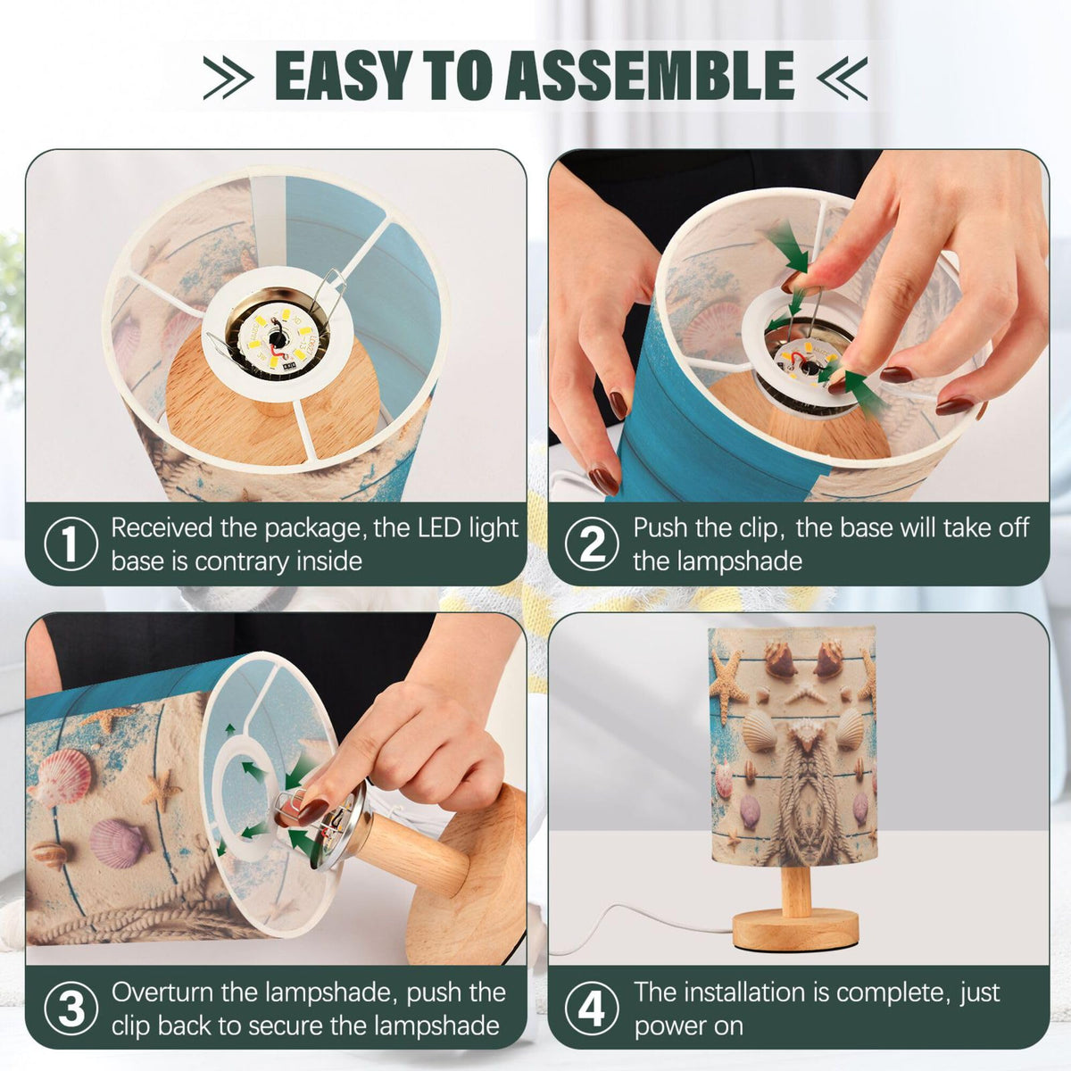 Yyzzh Summer Seashell Starfish Rope Sand On Blue Wood Table Lamps Night Light Nightstand Lamp With Wood Base Fabric Lamp Shade Bedside Desk Lamp For Nursery Bedroom Living Room Kids Room Officesize: 13 Cm (Diameter Of The Lampshade) X 24.7 Cm / 5.12 Inches (Diameter Of The Lampshade) X 9.7 Inches; Printing Instructions: Lampshade Printing;Material: Linen Fabric (Lampshade) + Led Light (No Light Bulb) With Wooden Base + Usb Button Line (Non-Demolition);Feature: The Table Lamp Includes A Lampshade, No Need To Install A Light Bulb, The Led Light Is Integrated With The Stable Wooden Base, A Short-End Button Switch, Which Is Convenient For You To Turn On Or Turn Off The Lights, Usb Interface, Plug And Use The Desk Lamp; Non-Flashing Warm Lights Protect Your Children And Family'S Eyes;Applicable Scene: Suitable For Bedrooms, Guest Rooms, Living Rooms, Study, Boy'S And Girls' Rooms, Offices, Desks, Etc;Instructions For Usage: ?The Lamp Holder And The Lampshade For Reverse Packaging, You Need To Separate Them First; ?Press Down The Center Buckle To Separate The Lamp Seat And The Lampshade; ?Press The Lampshade Center Buckle Into The Ring, Then The Install Is Complete; ?Control Usb To The Power Supply And Control The Button Switch.