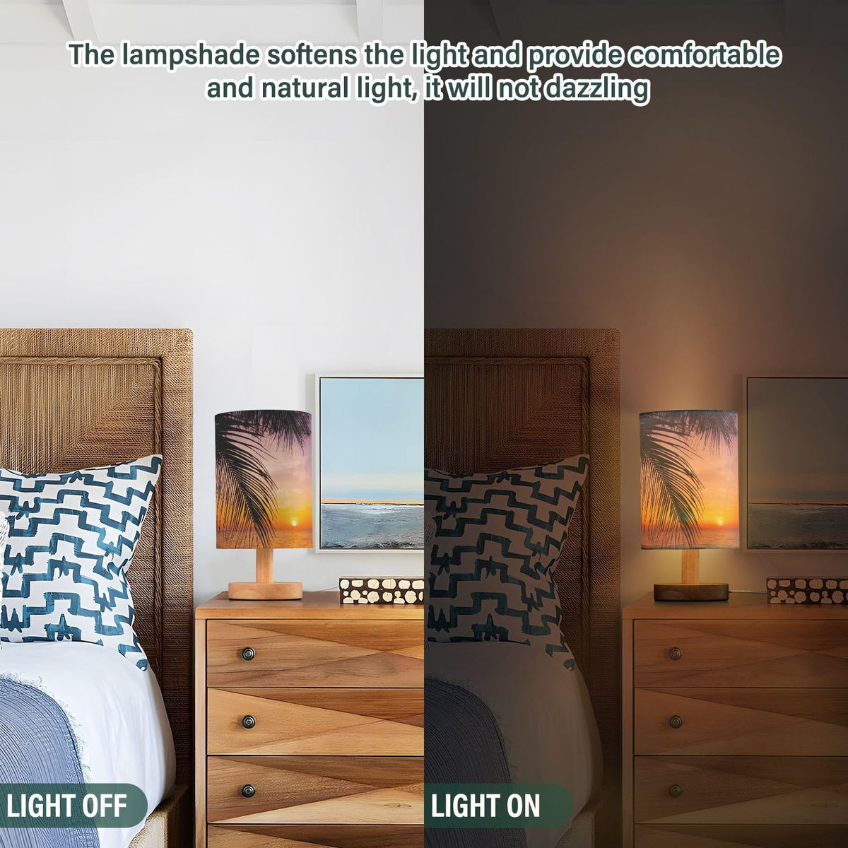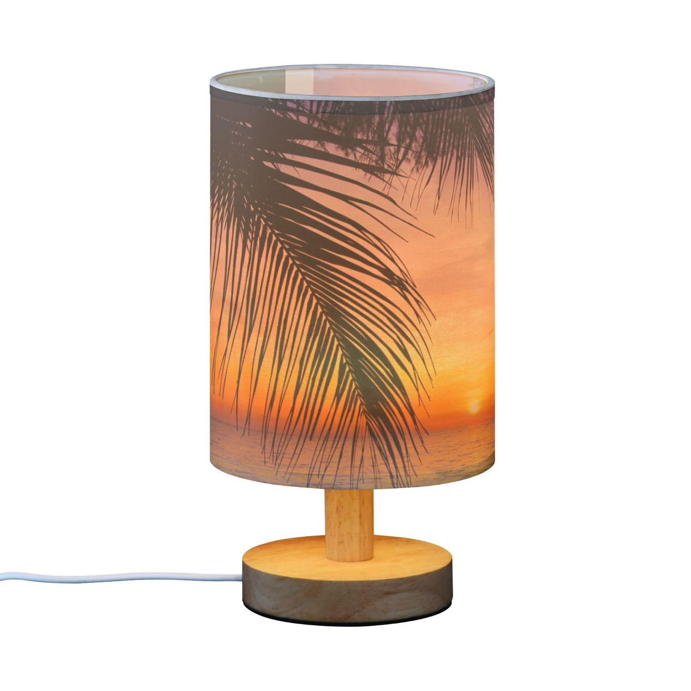 Yyzzh Table Lamp Sunset Ocean Palm Tree Tropical Summer Nightstand Lamp With Wood Base Fabric Lamp Shade Bedside Desk Lamp For L