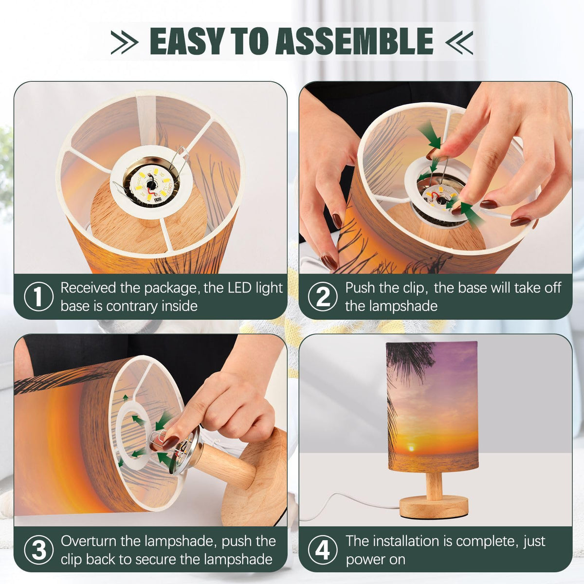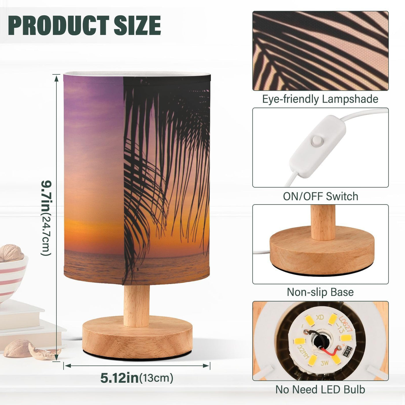 Yyzzh Sunset Ocean Palm Tree Tropical Summer Table Lamps Night Light Nightstand Lamp With Wood Base Fabric Lamp Shade Bedside Desk Lamp For Nursery Bedroom Living Room Kids Room Officesize: 13 Cm (Diameter Of The Lampshade) X 24.7 Cm / 5.12 Inches (Diameter Of The Lampshade) X 9.7 Inches; Printing Instructions: Lampshade Printing;Material: Linen Fabric (Lampshade) + Led Light (No Light Bulb) With Wooden Base + Usb Button Line (Non-Demolition);Feature: The Table Lamp Includes A Lampshade, No Need To Install A Light Bulb, The Led Light Is Integrated With The Stable Wooden Base, A Short-End Button Switch, Which Is Convenient For You To Turn On Or Turn Off The Lights, Usb Interface, Plug And Use The Desk Lamp; Non-Flashing Warm Lights Protect Your Children And Family'S Eyes;Applicable Scene: Suitable For Bedrooms, Guest Rooms, Living Rooms, Study, Boy'S And Girls' Rooms, Offices, Desks, Etc;Instructions For Usage: ?The Lamp Holder And The Lampshade For Reverse Packaging, You Need To Separate Them First; ?Press Down The Center Buckle To Separate The Lamp Seat And The Lampshade; ?Press The Lampshade Center Buckle Into The Ring, Then The Install Is Complete; ?Control Usb To The Power Supply And Control The Button Switch.