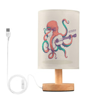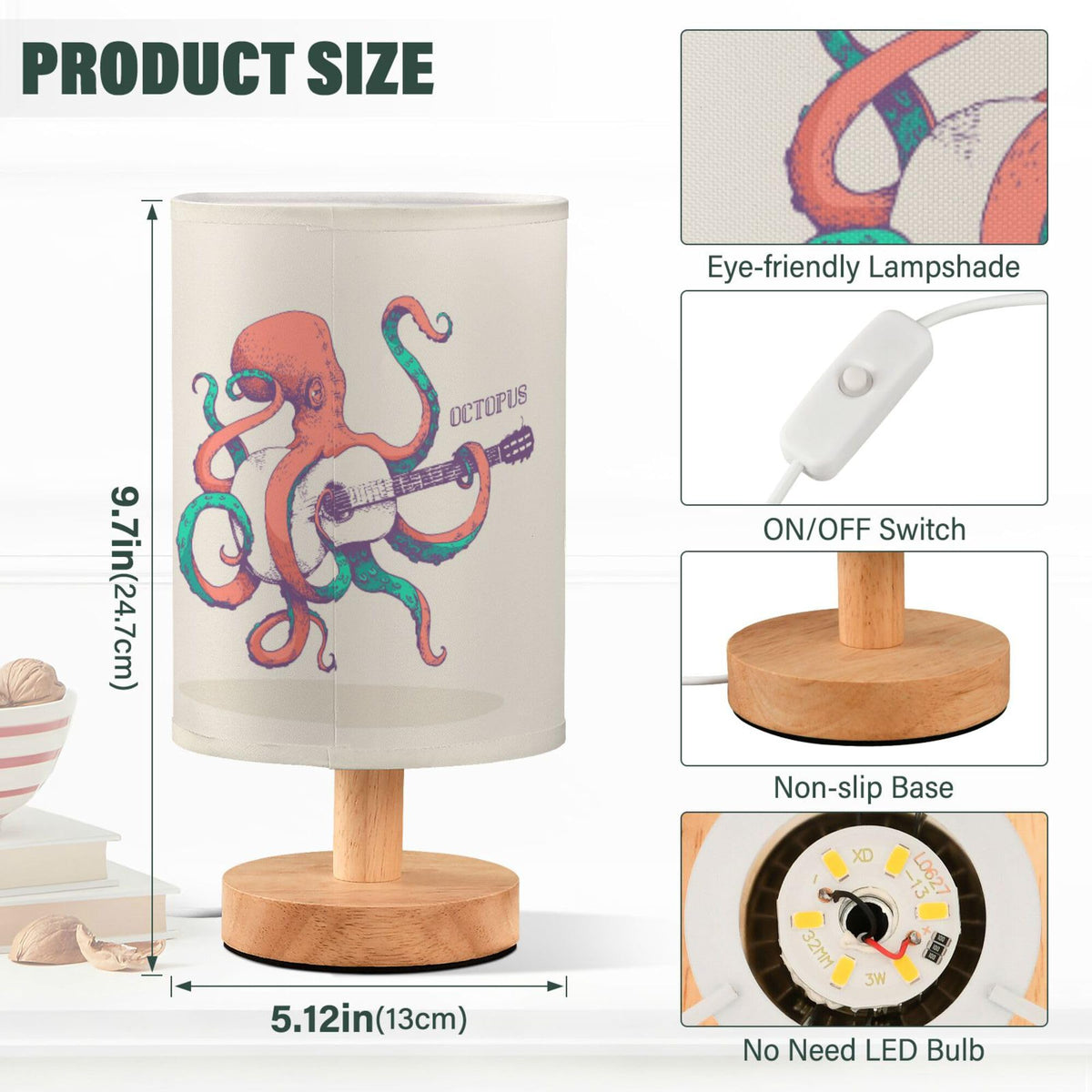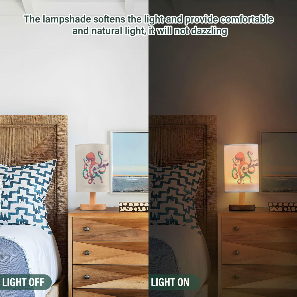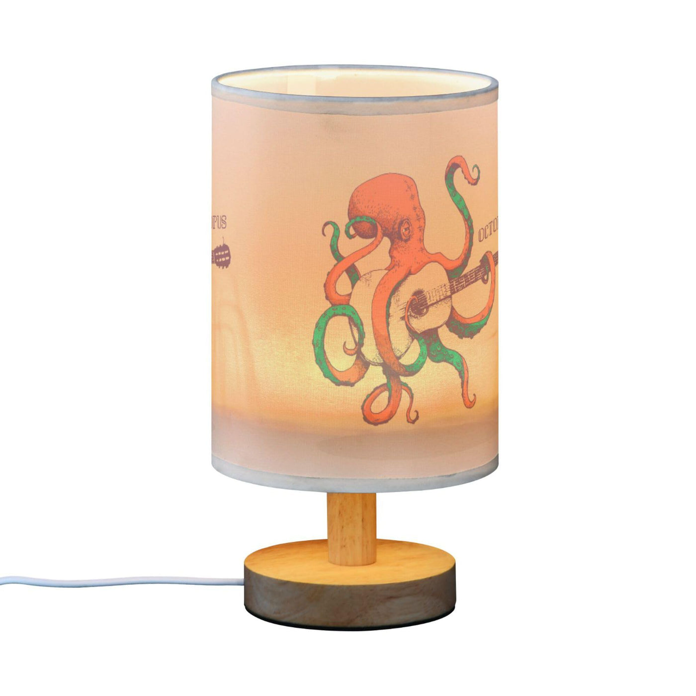 Yyzzh Table Lamp Vintage Octopus Play Guitar Ocean Marine Sea Life Design Nightstand Lamp With Wood Base Fabric Lamp Shade Bedsi