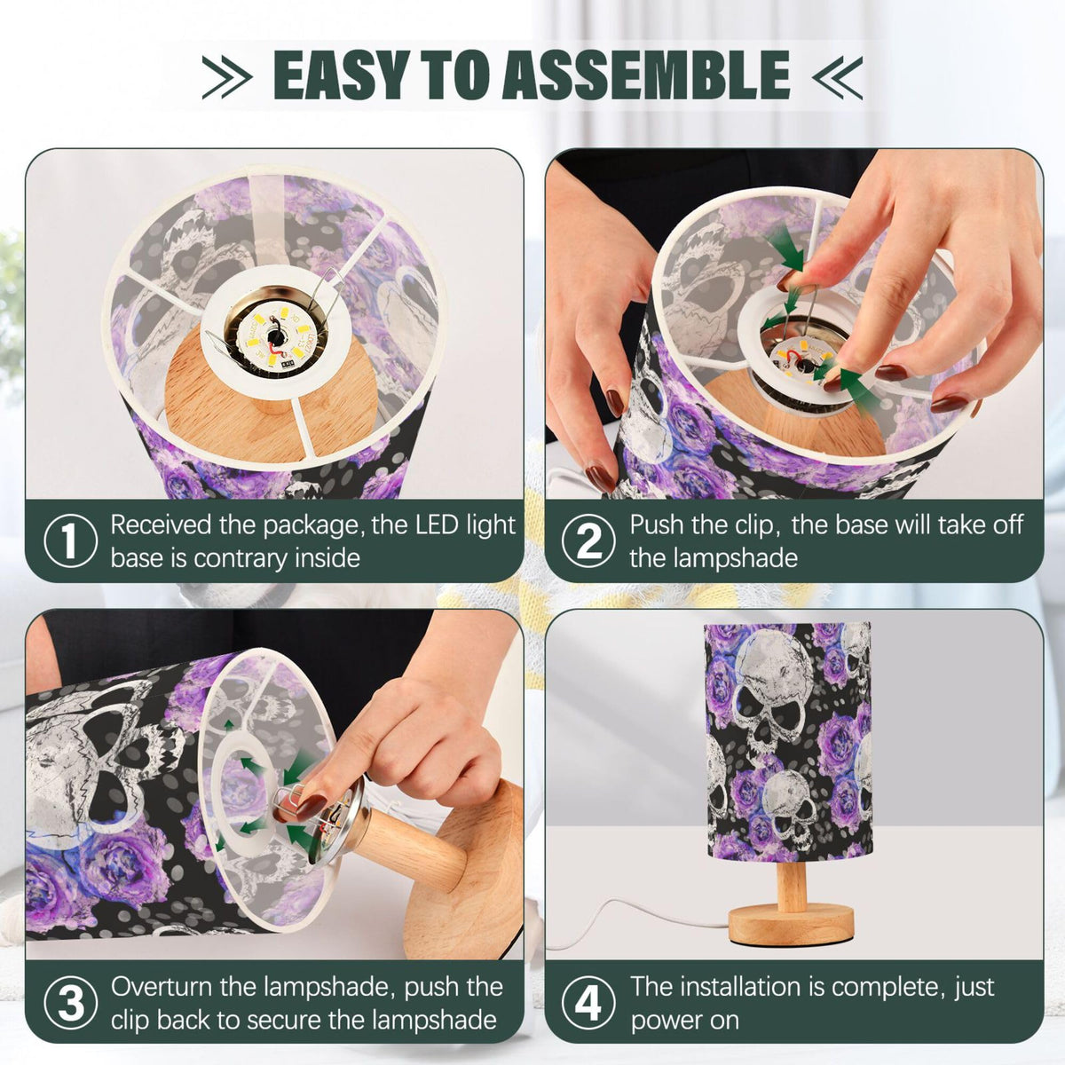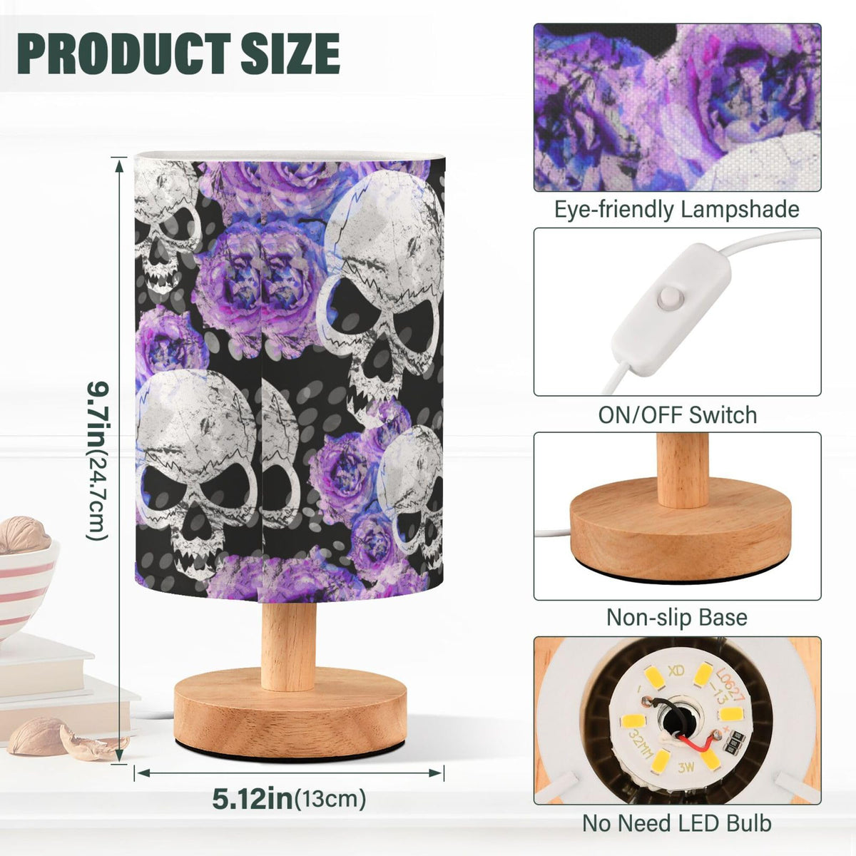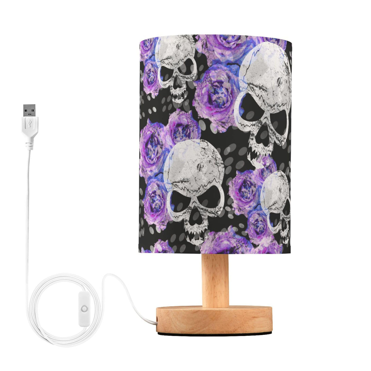 Yyzzh Watercolor Skull Purple Blue Rose Flower Floral Gothic Pattern Table Lamps Night Light Nightstand Lamp With Wood Base Fabric Lamp Shade Bedside Desk Lamp For Nursery Bedroom Living Room Kids Room Officesize: 13 Cm (Diameter Of The Lampshade) X 24.7 Cm / 5.12 Inches (Diameter Of The Lampshade) X 9.7 Inches; Printing Instructions: Lampshade Printing;Material: Linen Fabric (Lampshade) + Led Light (No Light Bulb) With Wooden Base + Usb Button Line (Non-Demolition);Feature: The Table Lamp Includes A Lampshade, No Need To Install A Light Bulb, The Led Light Is Integrated With The Stable Wooden Base, A Short-End Button Switch, Which Is Convenient For You To Turn On Or Turn Off The Lights, Usb Interface, Plug And Use The Desk Lamp; Non-Flashing Warm Lights Protect Your Children And Family'S Eyes;Applicable Scene: Suitable For Bedrooms, Guest Rooms, Living Rooms, Study, Boy'S And Girls' Rooms, Offices, Desks, Etc;Instructions For Usage: ?The Lamp Holder And The Lampshade For Reverse Packaging, You Need To Separate Them First; ?Press Down The Center Buckle To Separate The Lamp Seat And The Lampshade; ?Press The Lampshade Center Buckle Into The Ring, Then The Install Is Complete; ?Control Usb To The Power Supply And Control The Button Switch.