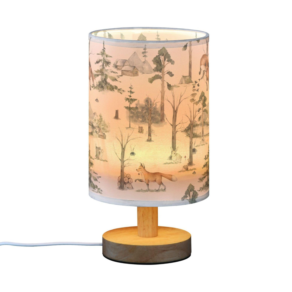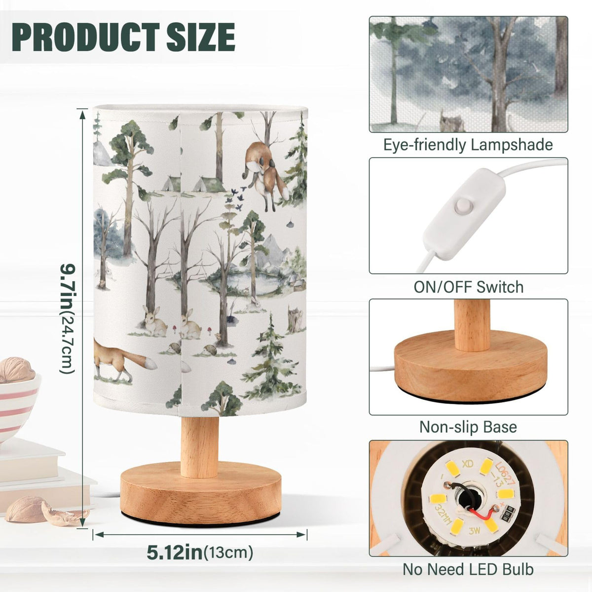 Yyzzh Table Lamp Watercolor Woodland Animal Pattern Fox Rabbit Hedgehog Bird Nightstand Lamp With Wood Base Fabric Lamp Shade Be