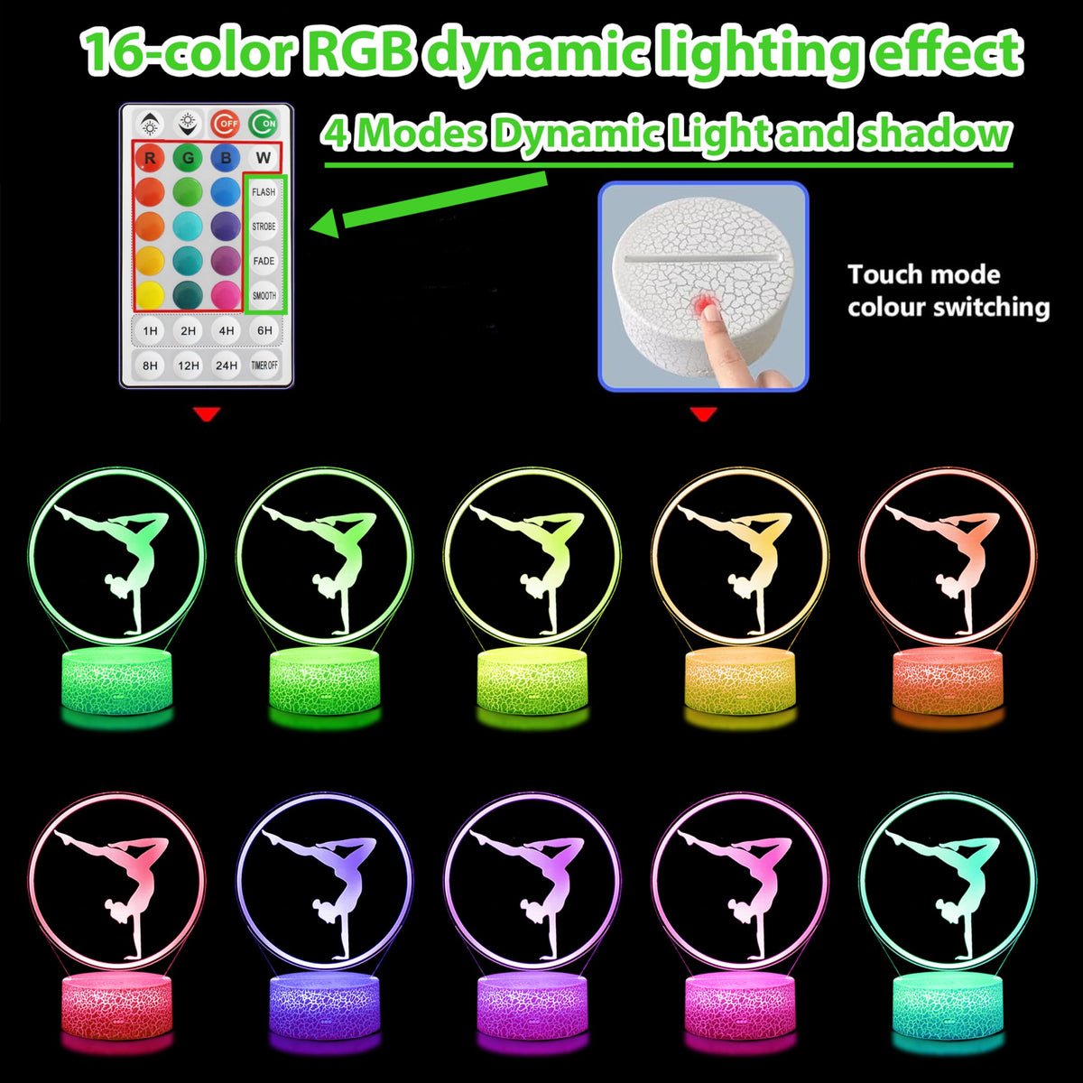 Yzddsi Artistic Gymnastics 3D Night Light - Gymnastics Stuff Gifts for Girls, Illusion Lamp for Kids Women Friends Coach Gymnast