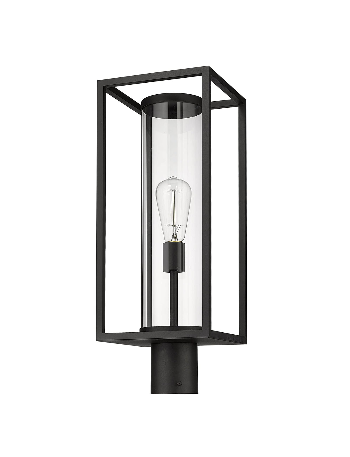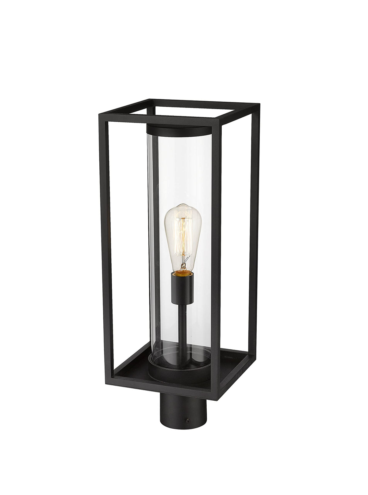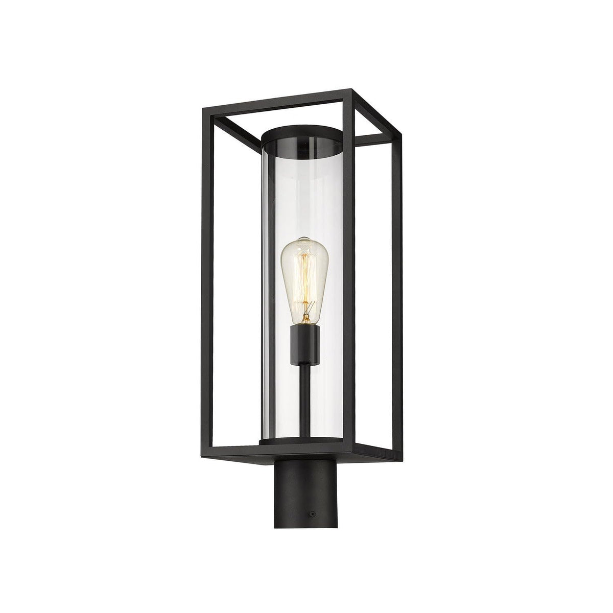 Cast a soothing glow along your outdoor spaces with the ultra-modern Z-Lite 1 Light Outdoor Post Mount Fixture from the Dunbroch collection. This stylish fixture is designed to enhance the ambiance of your dim footpath while adding a contemporary touch to your outdoor decor. Its unique open rectangular aluminum lantern design surrounds a single light encapsulated within a sleek tube-like glass globe, ensuring a blend of functionality and elegance. The dark black frame finish not only complements existing building facade colors and materials but also adds a sophisticated edge to any outdoor setting.