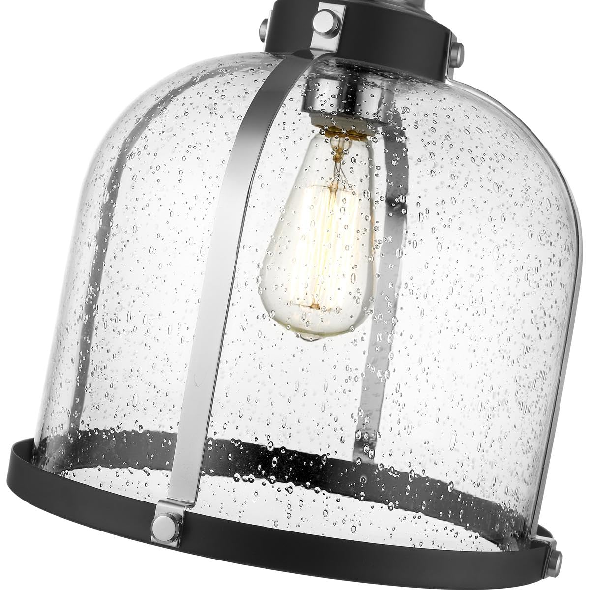 - **Striking Design**: The unique combination of matte black and chrome finishes paired with a seedy glass shade offers an eye-catching aesthetic that complements a variety of decor styles.