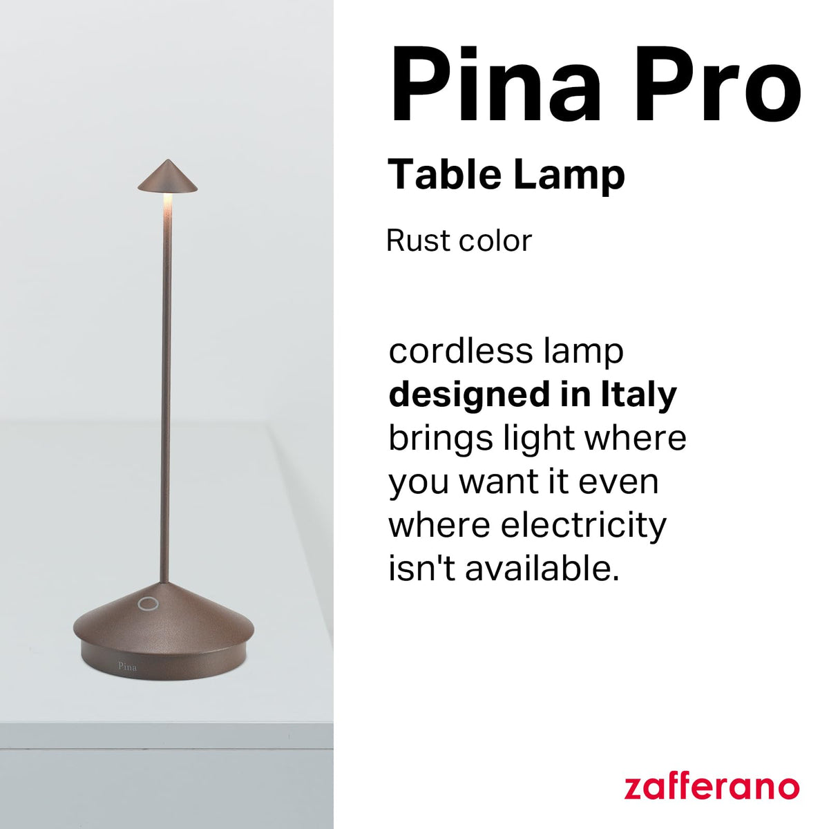 Zafferano, Pina Pro Lamp, Rechargeable Cordless Table Lamp With Touch Controls, Suitable For Indoor And Outdoor, Dimmer, 2200-30