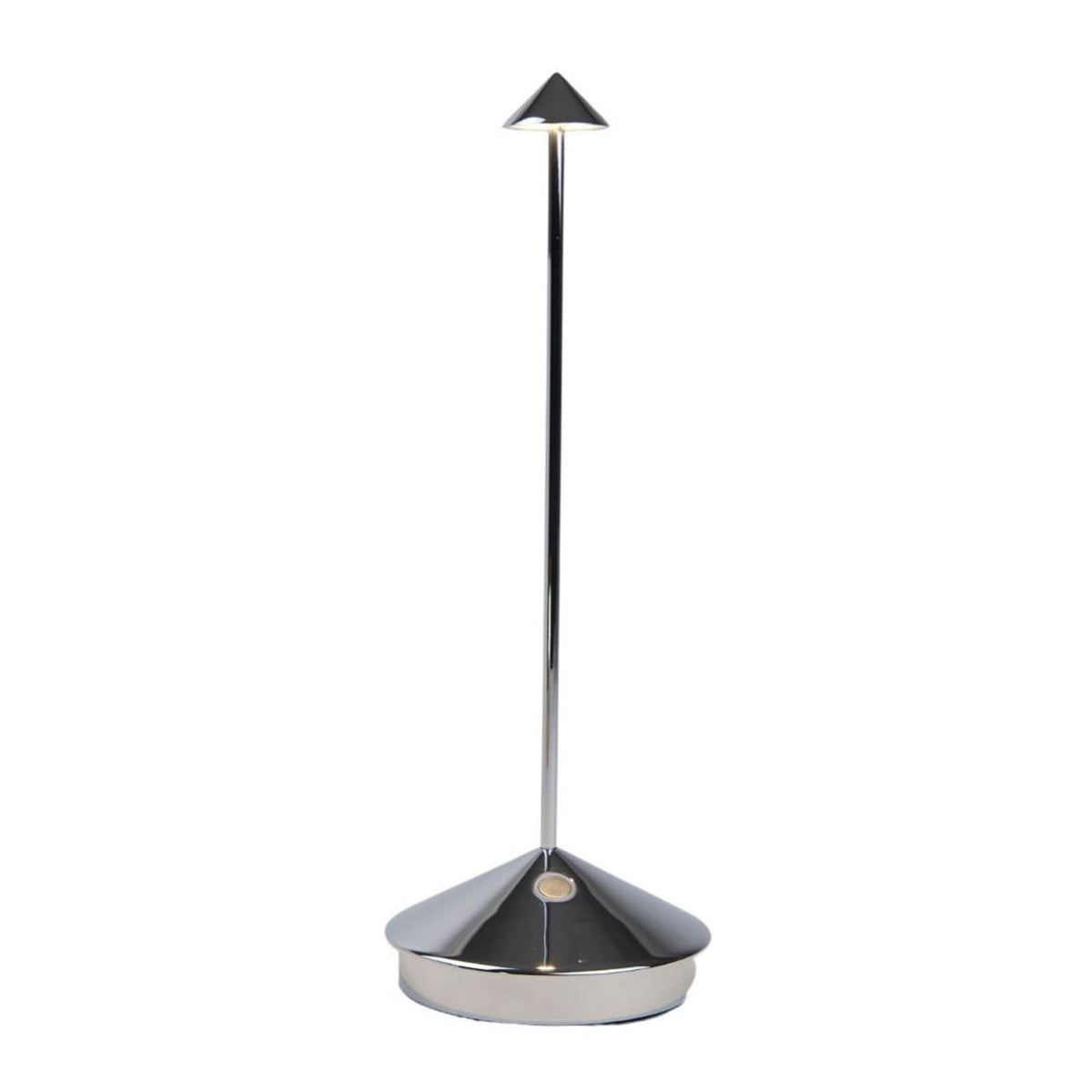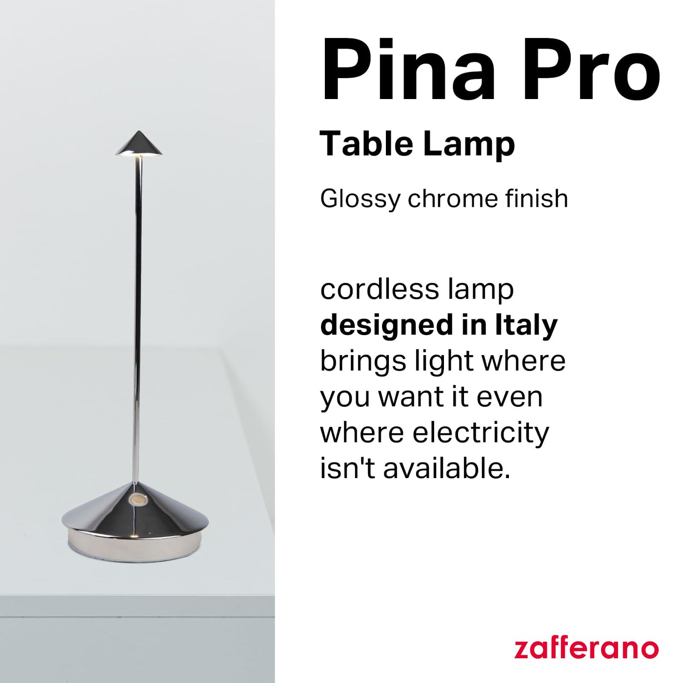 Zafferano, Pina Pro Lamp With Glossy Chrome Finish, Rechargeable Cordless Table Lamp With Touch Controls, Usable As An Indoor La