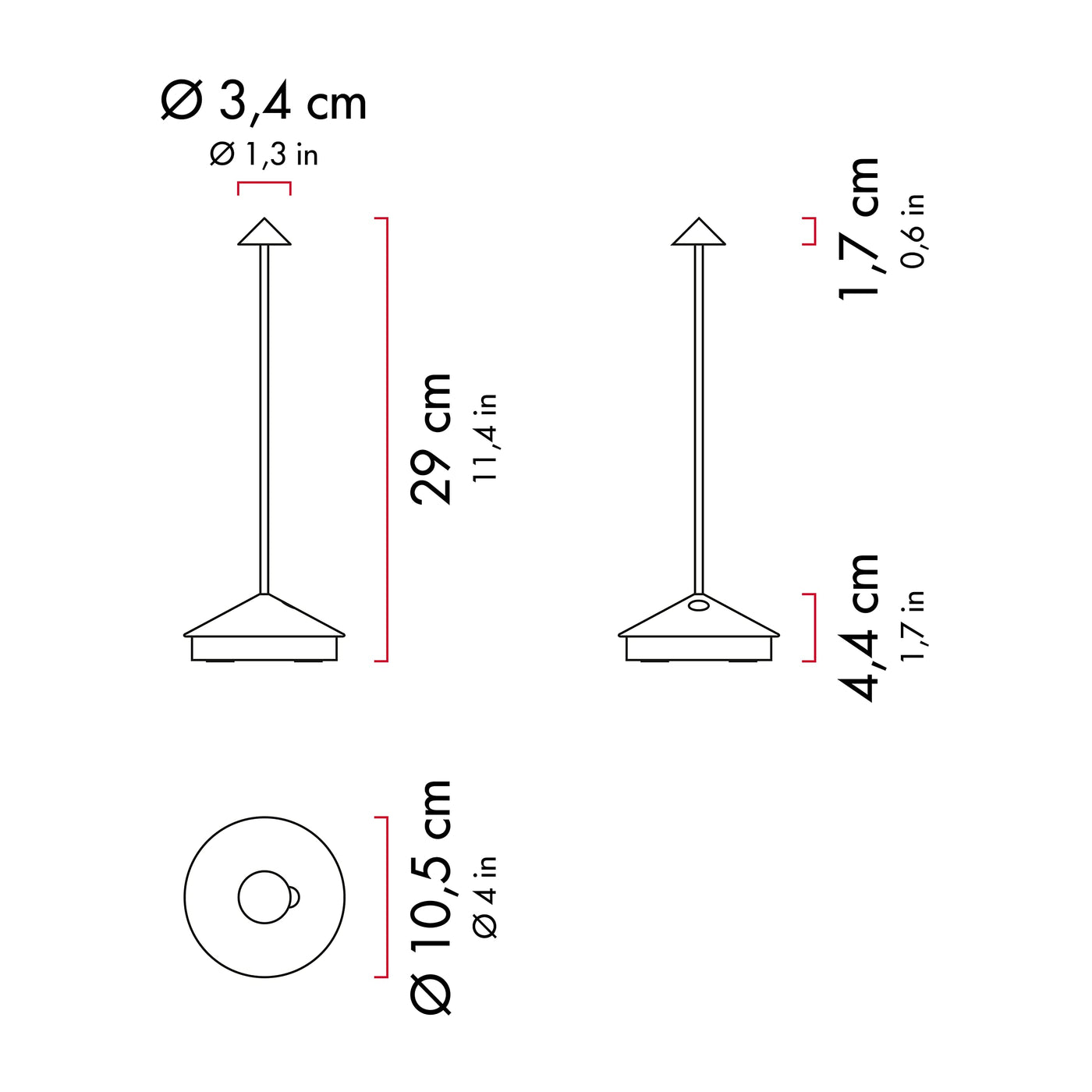 Q: What is the height of the Zafferano Pina Pro LED Table Lamp?A: The Zafferano Pina Pro LED Table Lamp has a height of 29 cm, making it a perfect size for both indoor and outdoor settings.
