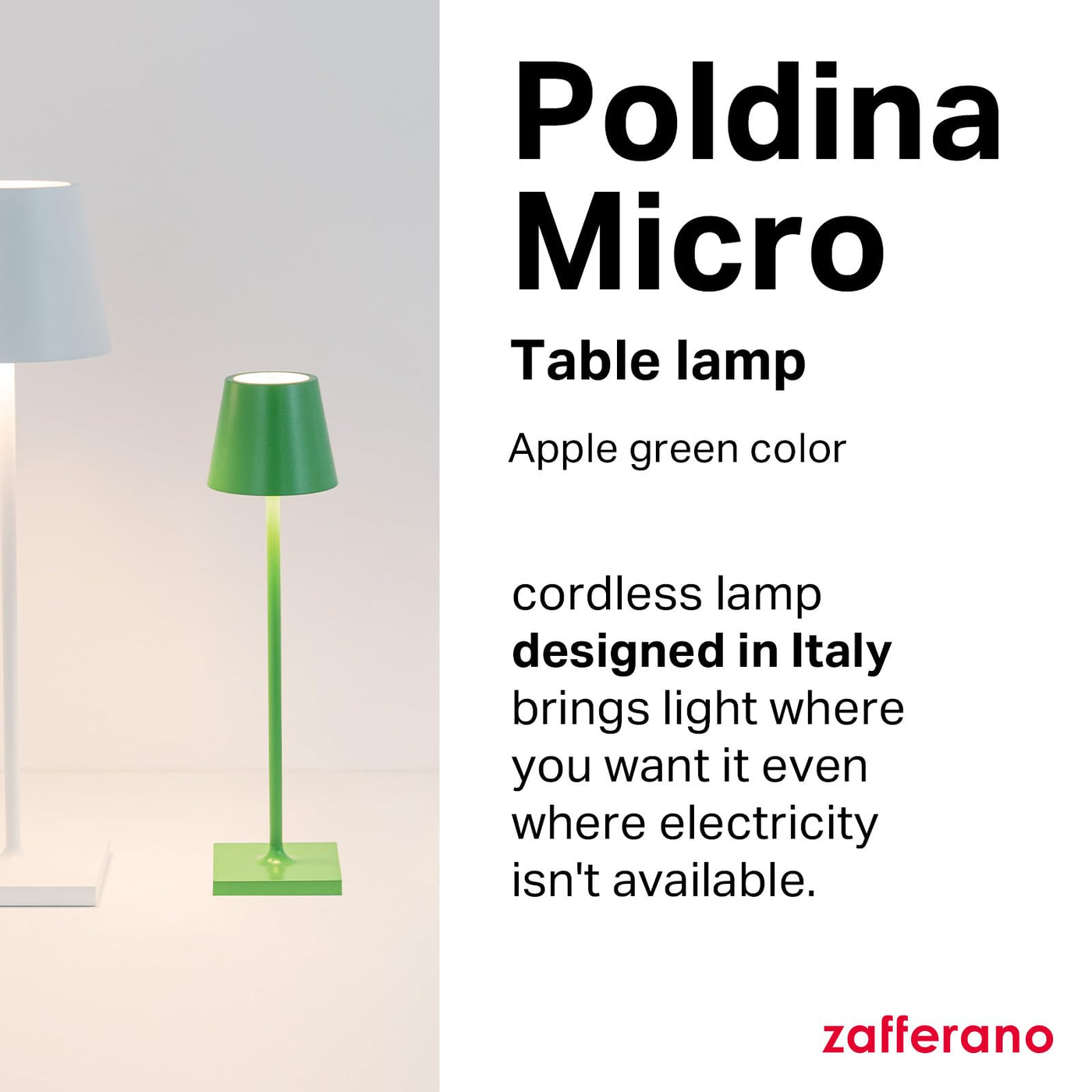 Enhance your living space with the Poldina Micro lamp from Zafferano, available in a vibrant apple green color. This lamp not only serves as an elegant lighting solution but also embodies innovation and practicality. Perfect for any occasion, it invites warmth and sophistication into your home or outdoor area.