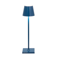 Q: What materials are used in the construction of the Poldina Micro Lamp?A: The Poldina Micro Lamp features a modern design with a Capri blue powder-coated structure and a polycarbonate diffuser. This combination not only enhances its aesthetic appeal but also ensures durability and functionality.