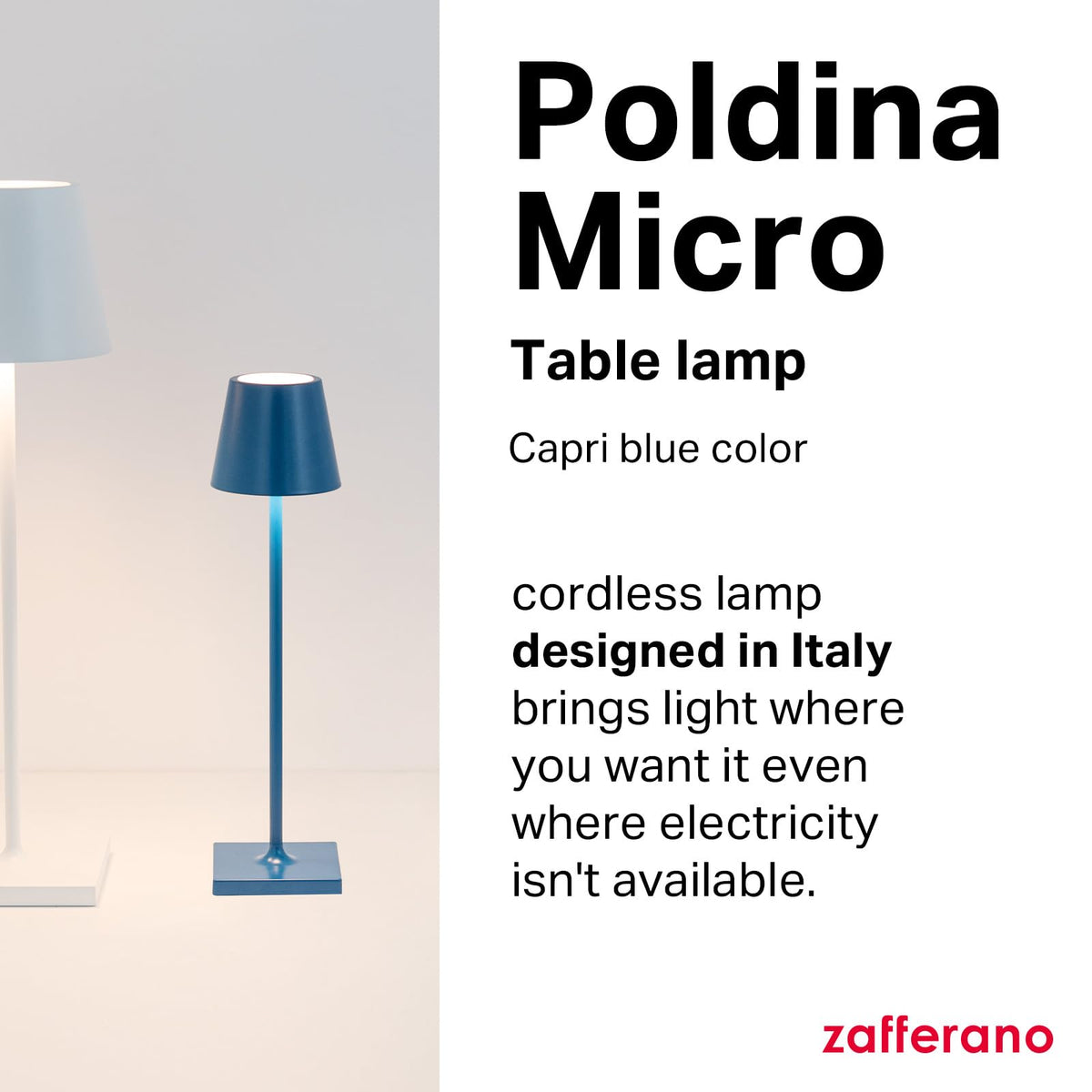 Poldina Micro Is Modern, Lightweight, Elegant, And Easy To Carry Thanks To Its Small Size. The Structure Is Powder-Coated, The Diffuser Is Made Of Polycarbonate, And The Light Source Is Led. The Poldina Micro Lamp By Zafferano Is The Ideal Solution For Illuminating Any Space In A Practical And Versatile Way. This Cordless Table Lamp Offers You The Freedom To Bring Light Wherever You Want, Even In The Absence Of Power Outlets. With Poldina Micro, You Can Illuminate A Dinner In The Garden With Friends, Enjoy An Evening Of Reading On The Balcony, Create A Cozy Atmosphere Under The Porch On Summer Evenings, Or Use It As Emergency Lighting During A Blackout. Poldina Micro Is Equipped With A Touch Button Located On The Top Of The Head, Which Allows You To Turn It On Or Off, Adjust The Brightness, And Select The Color Temperature Of The Light Between 2200K, 2700K, And 3000K. Thanks To Its High Protection Index (Ip65), This Lamp Is Suitable For Indoor And Outdoor Use. Charging The Battery Of Poldina Micro Is Extremely Simple. Just Place The Lamp On The Contact Charging Base To Complete The Charge In About 3 Hours. Once Fully Charged, The Battery Has A Duration Of 7-8 Hours. Furthermore, Thanks To The Electronic Control System That Monitors The Remaining Battery Life, It Is Possible To Optimize The Charges And Avoid Overcharging. The Batteries Are Replaceable When They Reach Their End Of Life (Typically After 500 Charges).