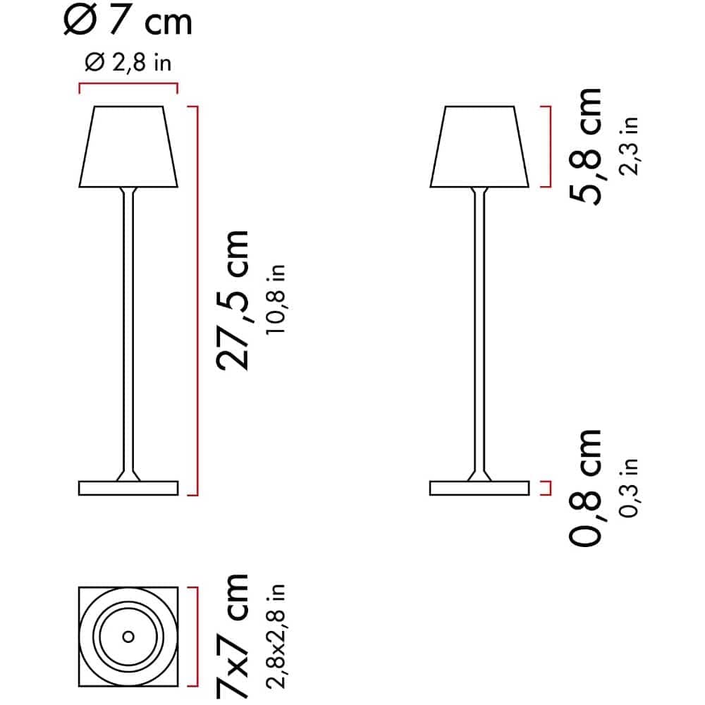 Q: What is the height of the Zafferano Poldina Micro Lamp?A: The Zafferano Poldina Micro Lamp has a height of 10.8 inches, making it a perfect size for both table and outdoor use.