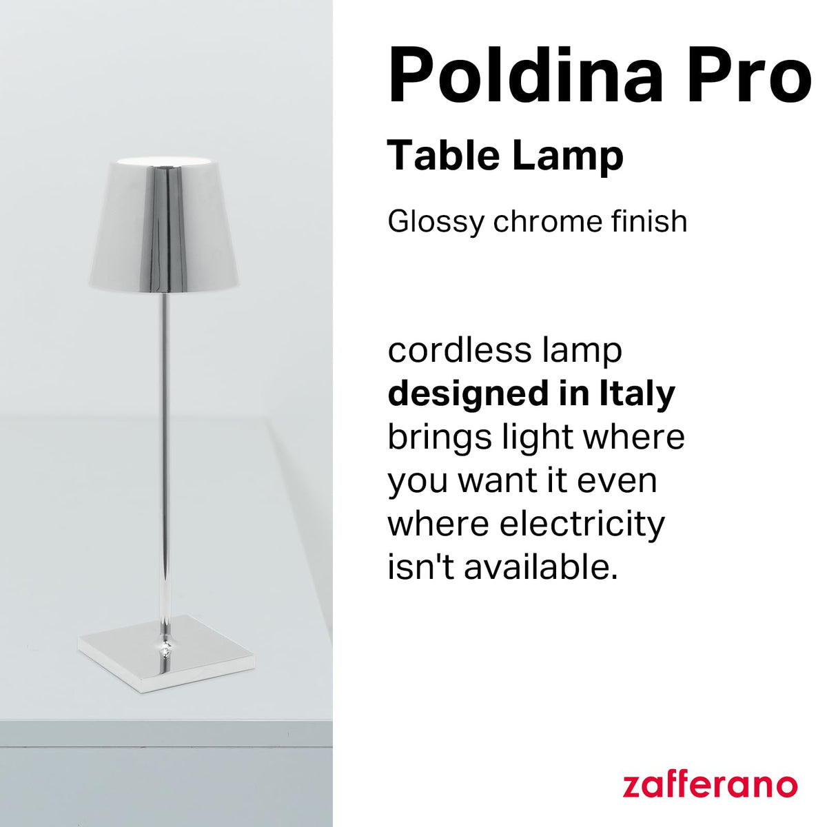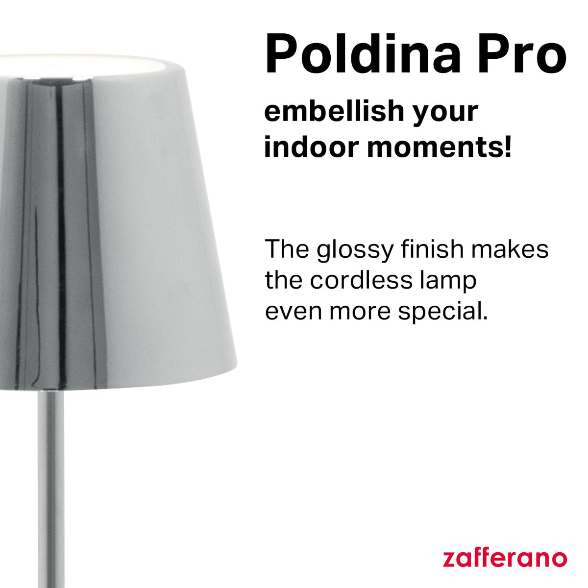 Please note that the Glossy Gold and Glossy Chrome finishes are not suitable for outdoor use. The Poldina Pro Table Lamp is not just a source of light; it's a stylish addition to your home that combines functionality with elegance. Embrace the freedom of cordless lighting and transform your space today.
