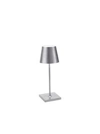 Zafferano, Poldina Pro Mini Lamp With Silver Leaf, Rechargeable Cordless Table Lamp With Touch Controls, Usable As An Indoor Lam