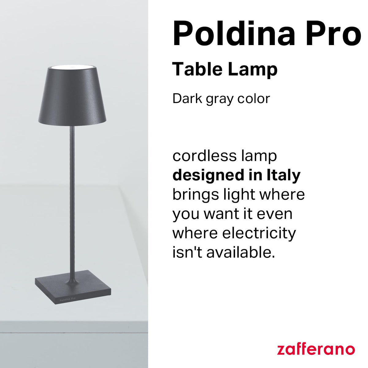 Zafferano Poldina Pro Rechargeable Cordless Table Lamp, Touch Control, Dark Gray, 14.9"