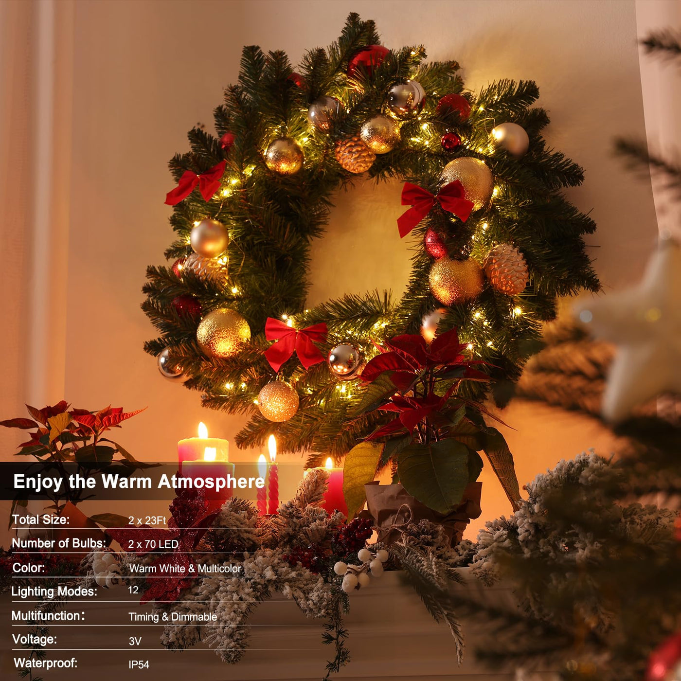 Zaiyw 2 Pack Color Changing Christmas Lights Battery Powered, 23Ft 70 Led Mini String Lights With Remote, Warm White Multicolor