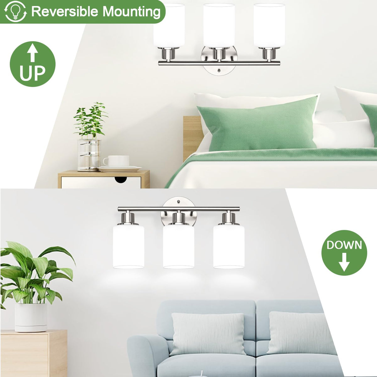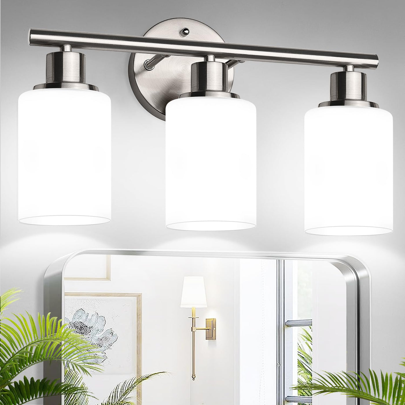 Zarbitta 3-Light Bathroom Light Fixtures, Brushed Nickel Vanity Light, Farmhouse Wall Lights With Milky White Frosted Glass Shad